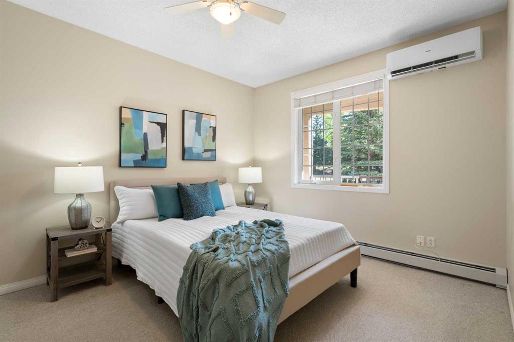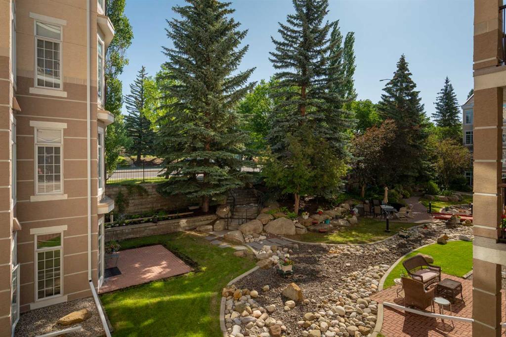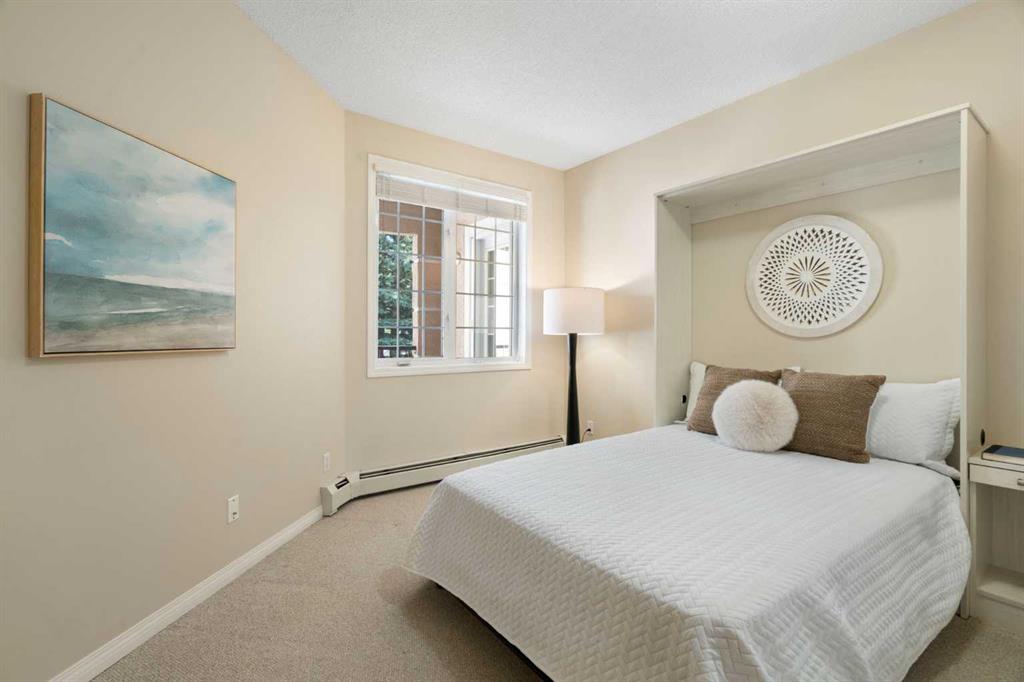 Welcome to The Phoenician, an exceptional adult (18+) community known for its beautifully landscaped grounds, warm atmosphere, and prime location. This spacious 2 bedroom, 2 full bathroom condo is tucked away in a secluded spot overlooking the serene courtyard, providing both privacy and a peaceful view. The bright, open concept layout offers a large island kitchen with pantry, generous living and dining areas, and a garden door leading to your private balcony. Thoughtful updates include newer tile, laminate flooring, sinks, and toilets. The bedrooms feature cozy carpet, while the rest of the unit has easy-to-maintain laminate. The primary bedroom is air-conditioned for year-round comfort (brand new air conditioner), and the other bedroom includes a built-in Murphy bed for added functionality. The primary suite is a true retreat, complete with a full ensuite, walk-in closet, and its own air conditioning unit. Additional conveniences include in-suite laundry, heated underground parking, and a separate storage locker. Life at The Phoenician is enriched by an impressive array of amenities: a theatre and media room, library and reading lounge, games and billiards area, and a recreation room with a cozy fireplace. Residents also enjoy a workshop and hobby room, well-equipped fitness centre, community kitchen, car wash bay, and two guest suites for visitors. The building is expertly managed with an on-site resident manager and four elevators for ease of access. The location is outstanding — just steps to Dalhousie Station, with shopping, dining, and the C-Train at your doorstep. The University of Calgary, Market Mall, Foothills Medical Centre, University District, and downtown Calgary are all just minutes away. Blending comfort, convenience, and a true sense of community, this well-managed residence offers an unparalleled lifestyle in one of northwest Calgary’s most sought-after buildings. Don’t miss the chance to make it your new home.