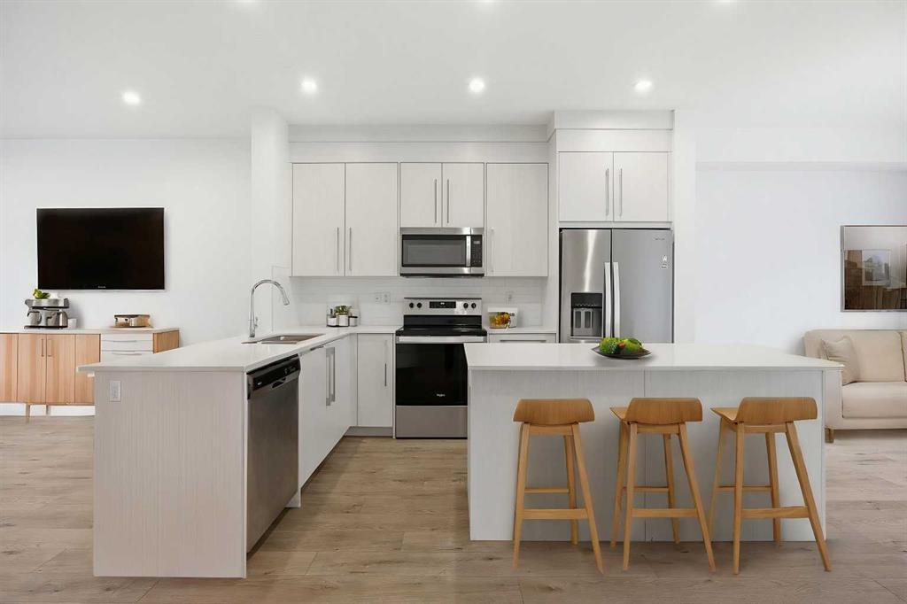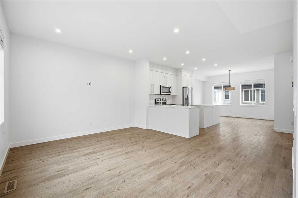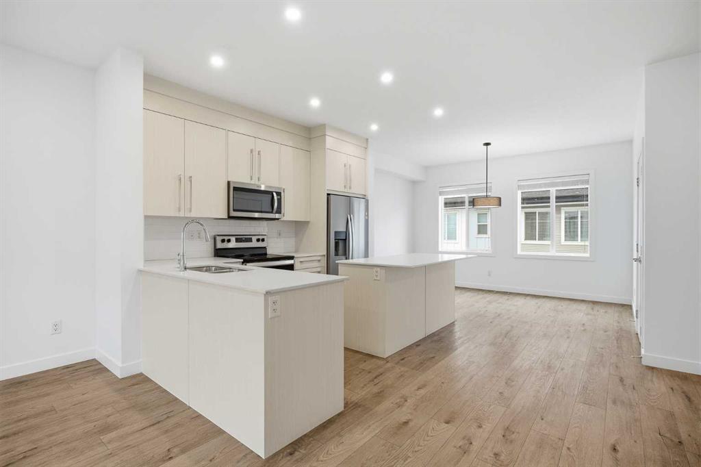 | LOW CONDO FEES | DOUBLE GARAGE | 4 BED & 2.5 BATH | 1600+ SQFT TOTAL | Discover contemporary living at its best in this stunning built townhome by Truman Homes, situated in the highly sought-after Savanna community in Saddle Ridge, Calgary. This thoughtfully designed 3-storey home boasts 4 bedrooms, 2.5 bathrooms, and a double attached garage—with an additional storage space. The bright, open-concept second floor is filled with natural light from expansive East facing windows, while the living room opens onto a large balcony—ideal for relaxing or entertaining. The modern chef’s kitchen showcases sleek quartz countertops, stainless steel appliances, a large island, soft-close cabinetry, and a spacious pantry for extra storage. Next to the chef’s kitchen, you’ll find a dedicated dining area perfect for meals and gatherings. Completing this level is a two-piece powder room, featuring a sink, lavatory, and a large window for added brightness. Upstairs, you’ll find three inviting bedrooms, including a primary suite with elegant tray ceilings, a roomy walk-in closet, and a private 4-piece ensuite. The two additional bedrooms are generously sized, each with its own private closet, and they share a well-appointed 4-piece bathroom. A conveniently located side-by-side washer and dryer on this level add to the home’s functionality. The ground floor offers access to your double garage and a flexible bedroom, perfect for use as an office, guest room, or flex space, with ample natural light streaming in through its north-facing windows. Located just steps away from Savanna Bazaar, you’ll enjoy easy access to groceries, dining, and daily essentials. Commuters will love the proximity to major routes such as Airport Trail, 88th Ave, Metis Trail, and Stoney Trail, as well as nearby public transit options like Saddletowne Station. Whether you’re an investor seeking a rental property or a first-time homebuyer, this unit offers an unbeatable combination of location and value. Schedule your viewing today!