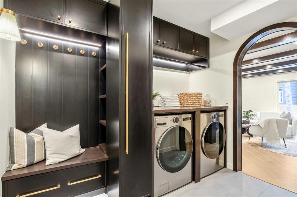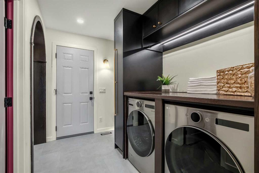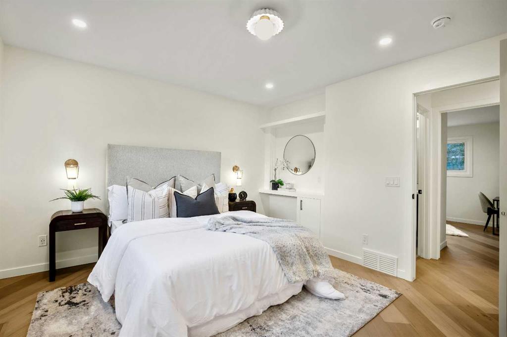 OPEN HOUSE: SUNDAY, MAR. 29: 11-2 PM | Welcome to Eleanor—an elegant, elevated, and exceptionally well-crafted home in the sought-after community of Oakridge. A fully renovated down to the studs home with over $600,000+ INVESTED (including all-new plumbing, electrical, and HVAC runs completed with all required city permits). Nestled on a quiet, tree-lined street, this home offers four bedrooms, a dedicated office and 2,366+ sq ft of living space, and an additional 500+ sq ft of crawl-space storage (not included in total living space). Situated on an expansive ~7,000 sq ft lot, only minutes away from South Glenmore Park, scenic pathways, and steps from Louis Riel School, Oakridge Community Centre, Stoney Trail, and more. The exterior of the home is striking yet inviting, featuring Hardie and Smart Panel siding, stained cedar soffits, new roofing and eavestroughs, and meticulously designed landscaping. The entry is equally refined, with a cedar-covered patio, garden-ready planters, and a stunning entrance inviting you home. Inside, sunlight fills every room through new triple-pane windows, white oak floors, curved oak arches, columns, beams, and white-oak butcher block shelving throughout. The main level features a Nordic-inspired kitchen with Taj Mahal counters, chocolate coloured white oak cabinetry, dovetail drawers and fluted detailing, a ~10-foot island with drop-down seating, a built-in coffee bar, and a glass wine display. Built-in appliances include a Fisher & Paykel fridge, freezer, and dishwasher, a Bosch 6-burner range, ZLINE convection oven, and Silhouette dual-temp wine fridge. The kitchen connects to the rear deck, creating a seamless transition between indoor and outdoor living. On the same level is the formal dining room and first living area, centred around a striking fireplace feature wall. Steps down, the main living room boasts dark oak ceiling beams, a second fireplace framed by custom arched cabinetry, a refined wet bar, and access to the backyard patio. This level also includes a glass-enclosed office, powder room, laundry, mudroom, and access to the finished oversized double car garage with epoxy floors and EV and garage heater rough-ins. Upstairs, the primary is a serene retreat featuring a fluted soaker tub, oversized double shower, champagne bronze fixtures, a walk-in closet, and a built-in makeup vanity. Two additional well-sized bedrooms with built-in closets and a beautifully finished full bath complete the level. The basement includes a rec room/flex room, an additional fourth bedroom, a three-piece bath with spa-calibre shower, cedar sauna and ample storage. Heated floors and champagne bronze fixtures are featured in all bathrooms. There’s new batt and blow-in insulation, a tankless water heater, central A/C, sump pump, solid core doors, smart home features, camera CAT-6 roughed-in, new drywall and a BBQ gas line on the deck. Eleanor embodies refined design and understated luxury—a rare opportunity to make her your home!