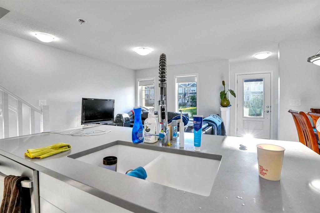 NO CONDO FEES – Discover exceptional value and stylish living at 216 Windbury Lane SW, a beautifully upgraded 3-bedroom, 2.5-bath townhome nestled in the heart of South Windsong, Airdrie. Perfectly positioned directly across from a park and scenic walking paths, this home offers the ideal blend of comfort, location, and modern design—with zero condo fees. Step into a bright and inviting open-concept main floor featuring luxury vinyl plank flooring, knock-down ceilings, and an abundance of natural light. The designer kitchen is the true showpiece, showcasing sleek quartz countertops, stainless steel appliances, upgraded cabinetry, and a large central island with bar seating, making it perfect for hosting or enjoying casual family meals. Upstairs, the spacious primary suite offers a tranquil retreat with a luxurious tiled ensuite shower, while two additional bedrooms provide ample space for kids, guests, or a home office. Both bathrooms are finished with high-end tilework and modern fixtures for a spa-like feel. Enjoy the convenience of an attached garage, a private driveway, and a fully landscaped exterior—all just minutes from top-rated schools, shopping, and quick access to Deerfoot Trail, CrossIron Mills, and North Calgary. Whether you’re a first-time buyer, a growing family, or looking to downsize without sacrificing style, this move-in-ready gem delivers the perfect balance of function and flair—all with no condo fees. Don’t miss this rare opportunity!