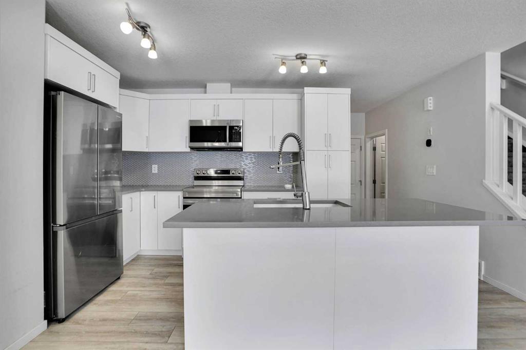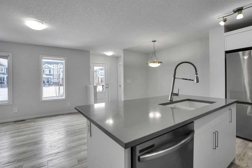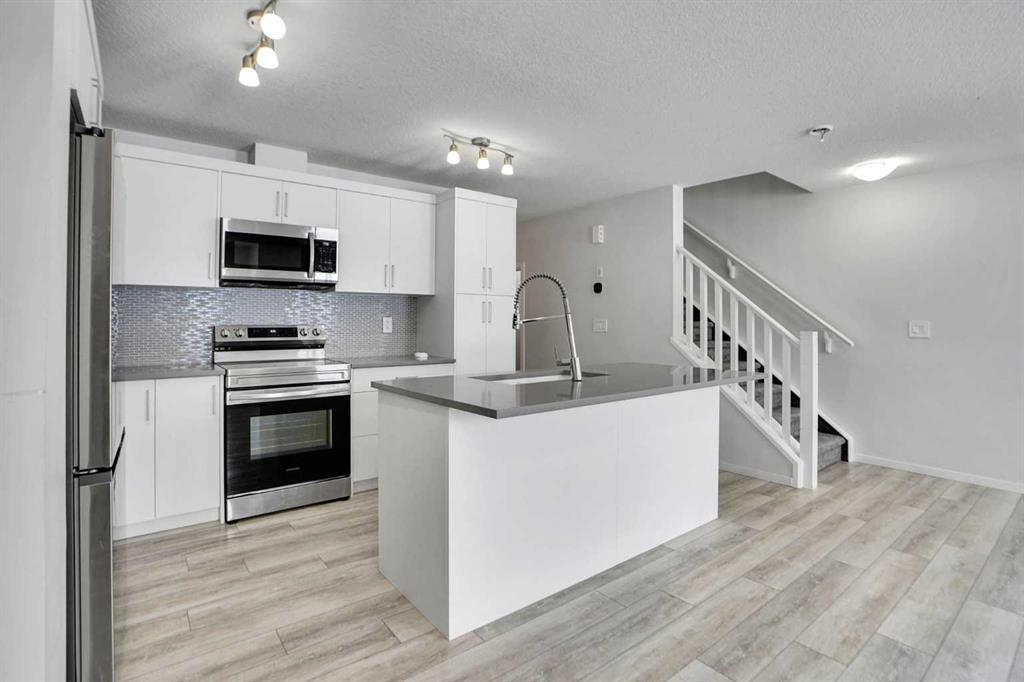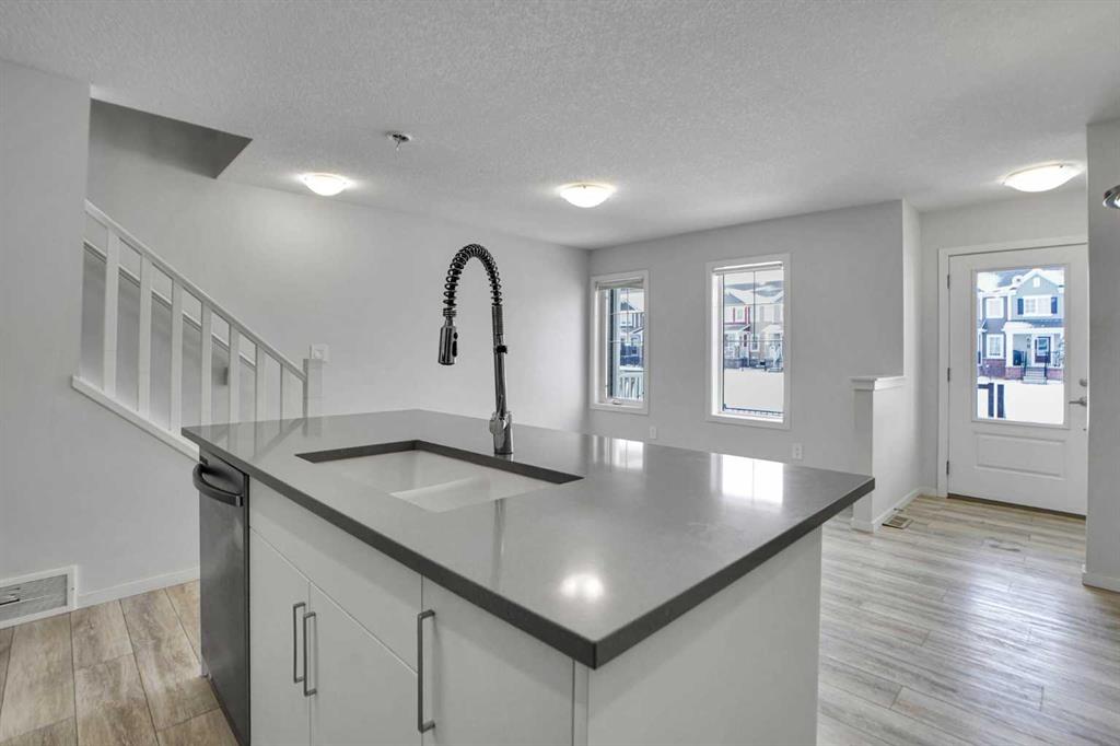 NO CONDO FEES – Discover exceptional value and stylish living at 216 Windbury Lane SW, a beautifully upgraded 3-bedroom, 2.5-bath townhome nestled in the heart of South Windsong, Airdrie. Perfectly positioned directly across from a park and scenic walking paths, this home offers the ideal blend of comfort, location, and modern design—with zero condo fees. Step into a bright and inviting open-concept main floor featuring luxury vinyl plank flooring, knock-down ceilings, and an abundance of natural light. The designer kitchen is the true showpiece, showcasing sleek quartz countertops, stainless steel appliances, upgraded cabinetry, and a large central island with bar seating, making it perfect for hosting or enjoying casual family meals. Upstairs, the spacious primary suite offers a tranquil retreat with a luxurious tiled ensuite shower, while two additional bedrooms provide ample space for kids, guests, or a home office. Both bathrooms are finished with high-end tilework and modern fixtures for a spa-like feel. Enjoy the convenience of an attached garage, a private driveway, and a fully landscaped exterior—all just minutes from top-rated schools, shopping, and quick access to Deerfoot Trail, CrossIron Mills, and North Calgary. Whether you’re a first-time buyer, a growing family, or looking to downsize without sacrificing style, this move-in-ready gem delivers the perfect balance of function and flair—all with no condo fees. Don’t miss this rare opportunity!