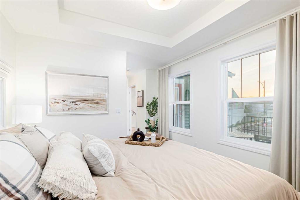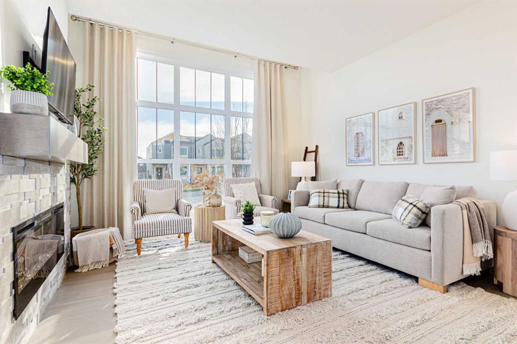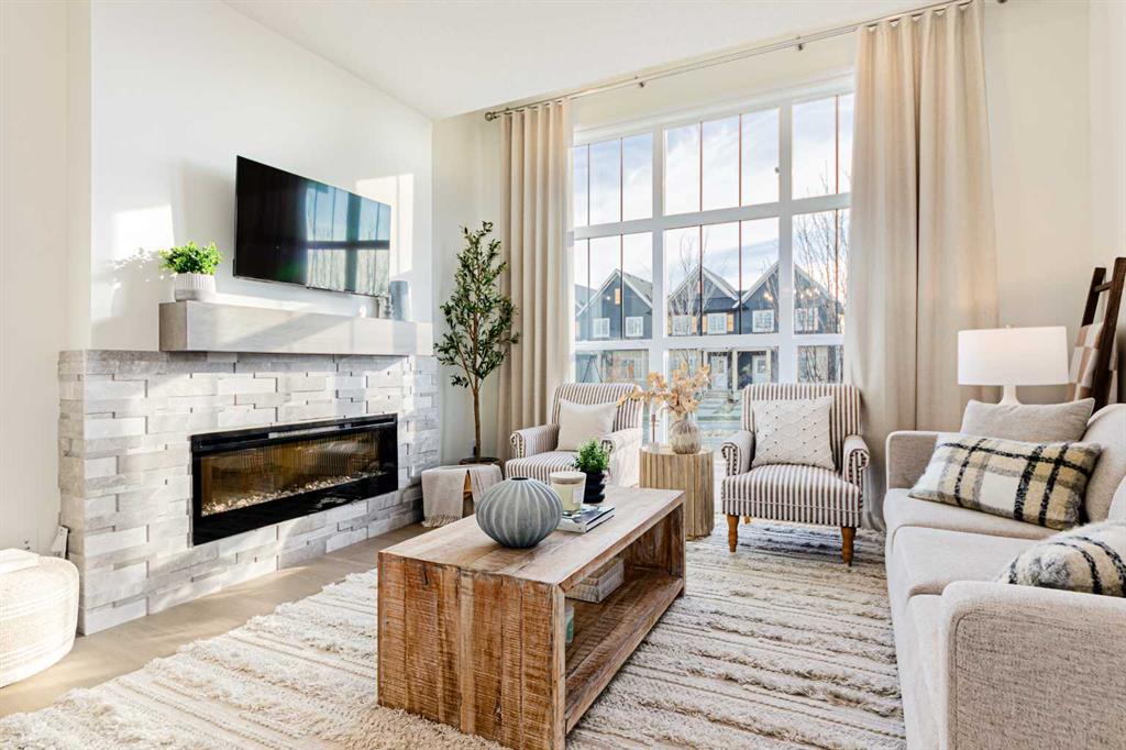Welcome to the Jasper by Genesis Builders, a beautifully designed townhome with no condo fees in the heart of Bayview. Offering 1,354 sq. ft. of above-grade living space, this home combines modern finishes, functional design, and unique features like a rooftop patio and a 20′ x 22′ attached double garage. The basement includes 9′ ceilings and is ready for your ideas. The main floor offers open-concept living with an inviting layout that’s both bright and practical. The kitchen is finished with stone countertops, stainless steel appliances, full-height cabinetry, and a large island with seating, flowing into the dining area and living room. A feature fireplace adds warmth and style, making the space perfect for both entertaining and everyday living. A half bath, storage, and direct garage access complete this level. Upstairs, the primary suite includes a walk-in closet and private ensuite with a large tiled shower. Two additional bedrooms, a 4-piece bath, and a conveniently located laundry space complete the upper floor. The rooftop patio above the garage provides a private outdoor retreat for relaxing or entertaining. Bayview is one of Airdrie’s most exciting communities, with pathways, playgrounds, an outdoor amphitheatre, basketball courts, and tennis courts that convert to a skating rink in the winter. With easy access to schools, parks, and the canals, Bayview offers both lifestyle and convenience. *Photos are representative colors and finishes may vary. Area size was calculated by applying the RMS to the blueprints provided by the builder. Similar Jasper model is currently available at 2150 Bayview Drive. Taxes to be assessed.