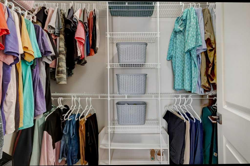 Upstairs, the spacious primary suite offers a peaceful retreat complete with a walk-in closet and beautiful views overlooking the D’Arcy Ranch Golf Course, with a peek-a-boo glimpse of the Rocky Mountains. Additional bedrooms provide flexibility for growing families, guests, or a home office.