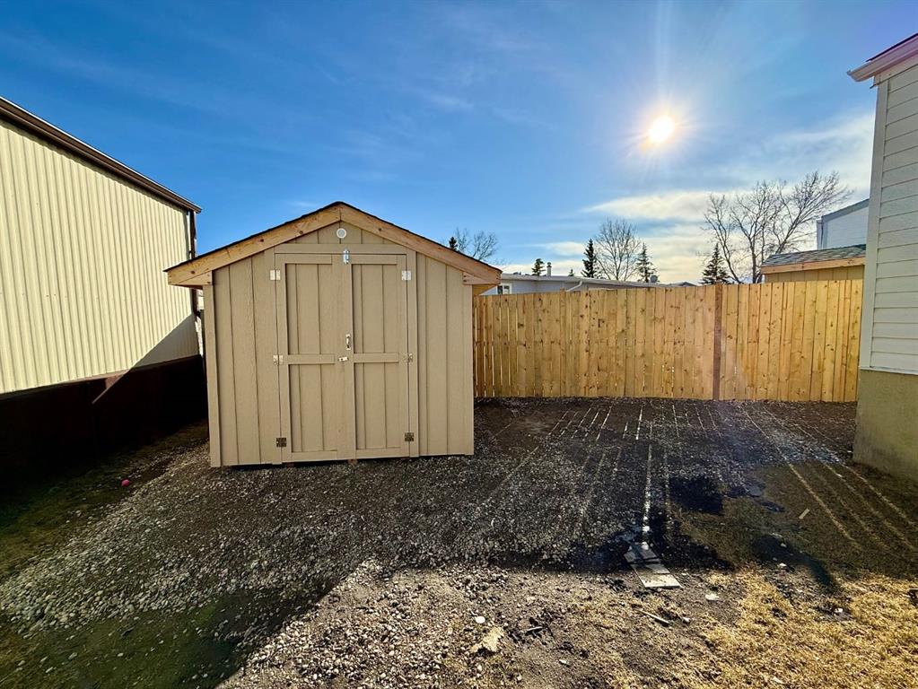 Welcome to this beautifully maintained 3-bedroom, 2-bathroom mobile home located in the quiet and well-kept 50+ community of Homestead Acres. Step inside to a bright open-concept kitchen, dining, and living area that is ideal for everyday living and entertaining. The south side of the home features a spacious primary bedroom complete with a large 3-piece ensuite and walk-in closet, while the north side offers two additional bedrooms, a full 4-piece bathroom, and a separate laundry and utility room for added convenience. Outside, enjoy an oversized deck, plenty of green space, new wood fencing, and a brand-new oversized shed. Numerous updates have been completed over the years including newer stainless steel appliances, washer and dryer, an updated furnace, and more—showcasing true pride of ownership. Book your showing today!