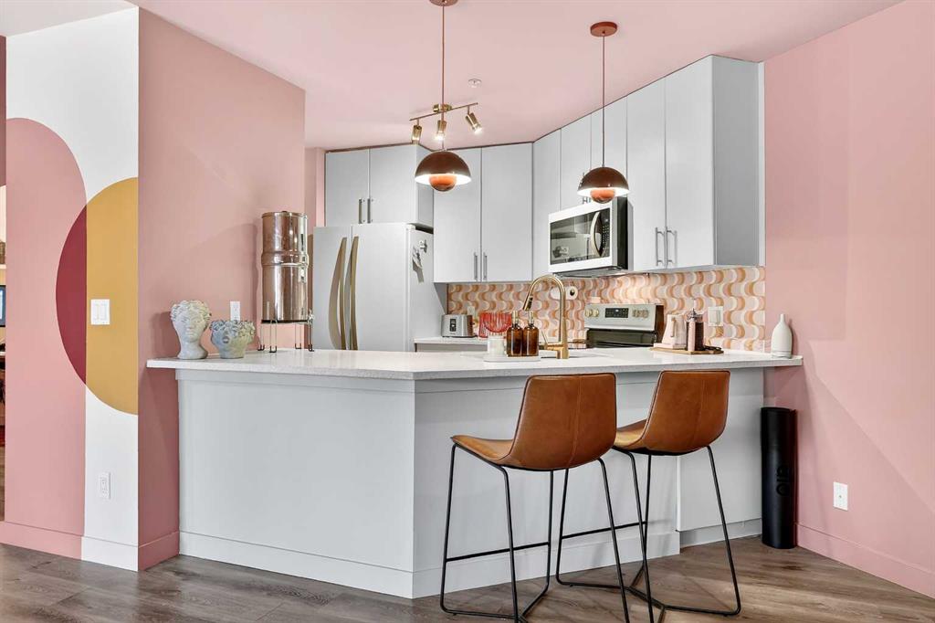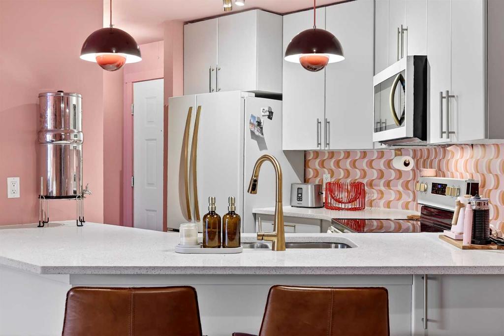 This bright and beautifully updated 1-bedroom + den unit in Laurel House at the Park is bursting with personality—perfect for someone who loves a home with character. From the custom paint and statement wallpaper to the eye-catching light fixtures, this space delivers serious retro-inspired charm with a modern twist.