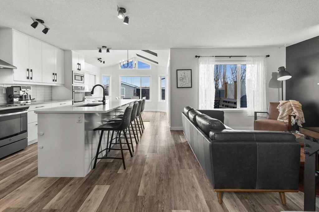 Welcome to 2,265 square feet of lovingly maintained and beautifully upgraded living space nestled in the heart of Coventry Hills, one of NE Calgary’s most established and warmly welcoming communities. This exceptional home blends thoughtful renovations, carefully chosen modern finishes, and a truly private outdoor setting to deliver a lifestyle that feels both elevated and effortlessly comfortable from the moment you first arrive. Curb appeal sets the tone immediately and makes a lasting impression. Brand new shingles, fresh new siding, a striking new front door, a new back door, and stunning Gemstone lighting make this home shine with pride in every season. It is the kind of polished street presence that turns heads and sets expectations high, and the interior delivers on every single one of them. Step inside and you are welcomed by a bright, open main floor freshly painted in 2026 and filled with beautiful natural light. The heart of this home is an extraordinary kitchen renovation showcasing custom cabinetry, gleaming quartz countertops, a stunning backsplash, built-in wall oven, a built-in microwave, and a premium graphite appliance package including a brand-new fridge and a Bosch dishwasher. A massive island anchors the space perfectly, ideal for entertaining guests, enjoying casual family dinners, or hosting relaxed weekend brunches with the people who matter most. A custom built-in workstation flows seamlessly into the oversized eating area, where a dramatic vaulted ceiling soars overhead and two generous skylights pour warm natural light into the room. Upgraded lighting throughout adds warmth, sophistication, and polish to every corner of this beautiful home. Upstairs, the generous primary bedroom provides a peaceful sanctuary complete with a full ensuite and a walk-in closet featuring custom built-ins. Two additional well-sized bedrooms, each with custom closet organizers & new blackout blinds, offer a restful and cozy retreat for family members or overnight guests. Every detail has been considered with both comfort & lasting practicality in mind. The developed basement expands your living options with ease & flexibility, offering a spacious media area perfect for movie nights, an additional bedroom, and a full bathroom, making it ideal for teenagers, visiting guests, or a quiet home office escape. Step outside and discover your own private backyard sanctuary with no direct neighbours behind you. The large deck features a thoughtfully added privacy wall. This outdoor space is one you will truly treasure season after season and is ideal for hosting summer barbecue’s, watching the kids play, or simply unwinding in the evening quiet with a cold drink in hand. Coventry Hills offers scenic pathways, beautiful parks, top-rated schools, and every everyday amenity within easy reach. Whether you are a growing family, a young professional, or simply someone who appreciates a meticulously maintained and a move-in ready home, this is the one you have been waiting for!