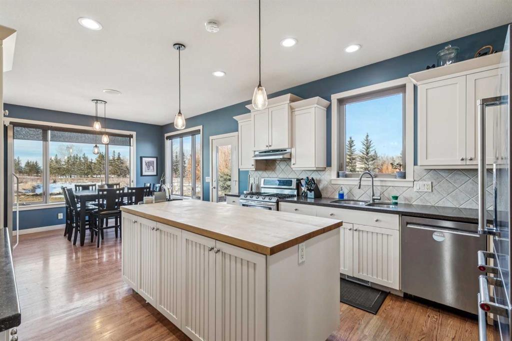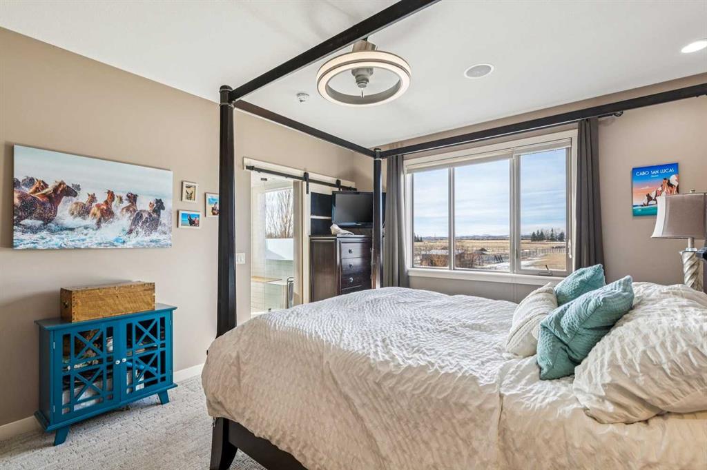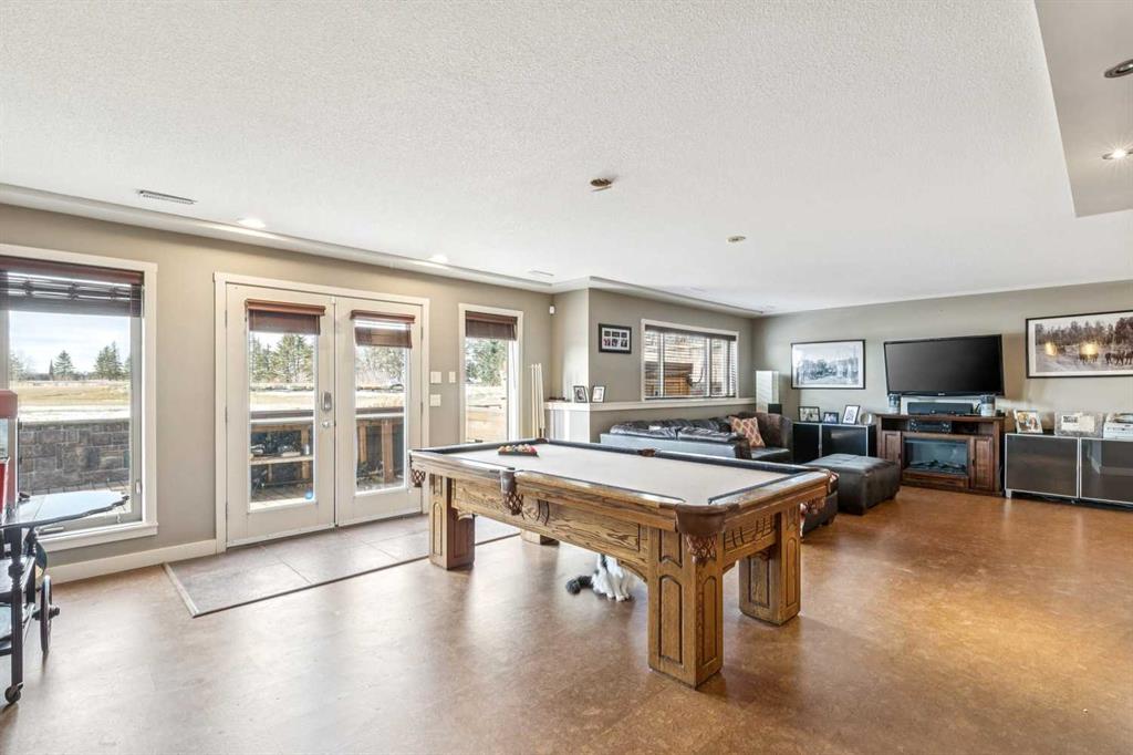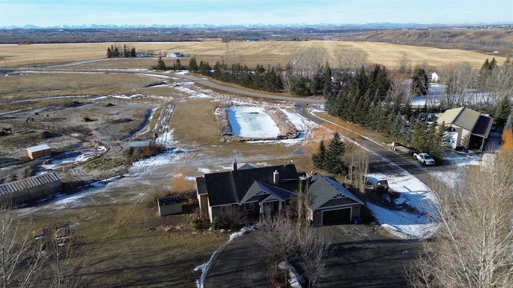 Step outside to your private oasis: a very unique stocked trout pond with sandy beach (perfect for summer swims), cross-fenced pastures with animal shelters, and mature trees adorning the grounds. The garden beds are ready for planting, and the outdoor entertaining spaces are unparalleled—three levels of low-maintenance decking, custom high-end gas fireplaces, and panoramic views. For the hobbyist, professional, or car enthusiast, the impressive 3000+ sq ft Steel framed, insulated and heated professional shop is a standout feature. Complete with an 600 sq ft mezzanine/ office/ man cave, it’s ideal for any home business use or endless projects.This impeccably maintained, move-in-ready home boasts great schools nearby, quick access to Calgary or Okotoks, and proximity to everything you need. Whether you’re seeking a peaceful family sanctuary, equestrian setup potential, or simply the ultimate acreage lifestyle with mountain vistas, this property delivers it all.