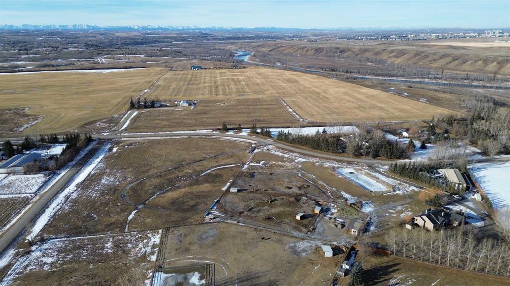 A rare opportunity to purchase this fantastic 5.66 acre lot by itself or part of a total package with home, shop and fish pond. On its own this property holds a great amount of potential as a blank slate for whatever your future designs may be. With easy paved road access to the property and close proximity to Calgary and Okotoks there are plenty of amenities not too far away but the quiet draw of the country is here to be absorbed and appreciated. From the back of this property the Bow River is just a short walk away. Bring your fishing rod and you can explore fantastic fishing spots and private river hideouts. If you are envisioning a private retreat, a family estate, or a custom home this land provides an exceptional opportunity for your future plans and the unobstructed mountain views will go perfectly with whatever you decide.