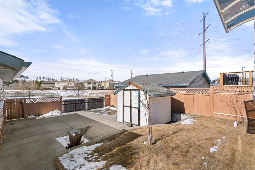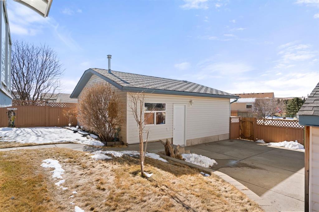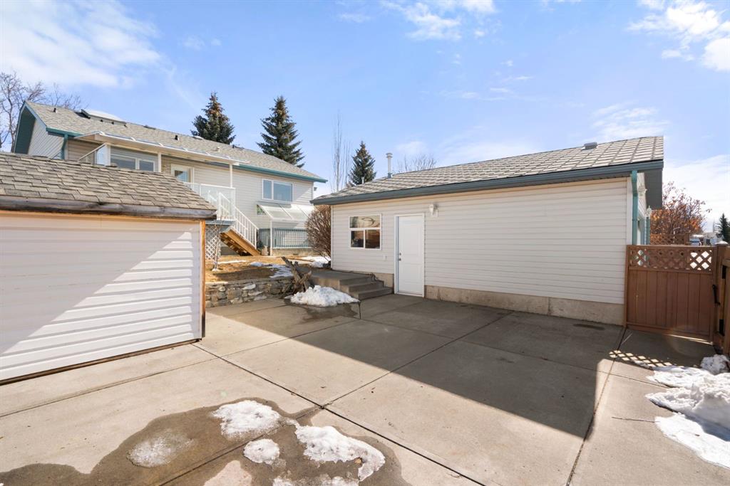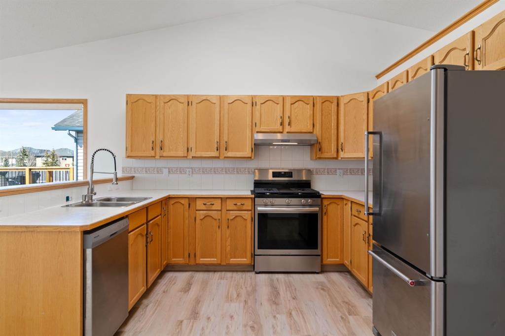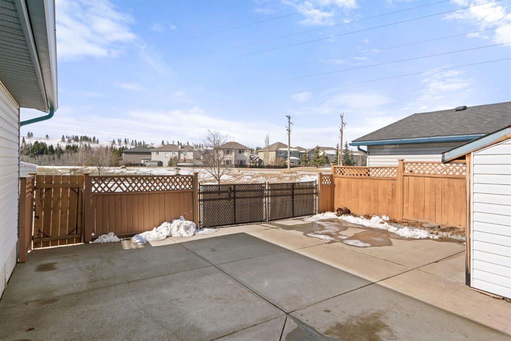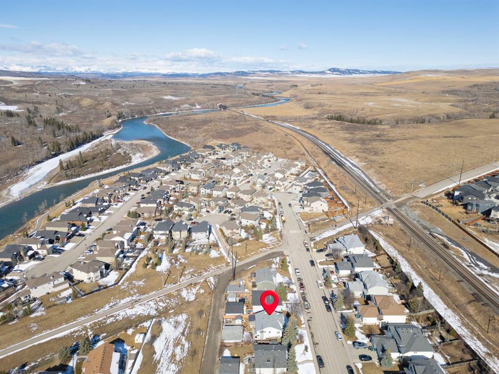 Beautifully maintained BUNGALOW in the desirable community of WEST TERRACE, just steps from Cochrane’s incredible pathway system & only a short WALK to the BOW River. This 3-bedroom, 3-bathroom home offers a functional layout with 2 bedrooms up OR enjoy your spacious primary retreat complete with PRIVATE 3 piece ensuite & use second bedroom as an OFFICE! 4 piece Bath PLUS convenience of MAIN FLOOR laundry on this level. Bright, inviting living area featuring cozy gas FIREPLACE, vaulted ceiling & a SUN FILLED kitchen enhanced by a skylight. SO much counter space. Walk in pantry! Recent updates include PAINT, vinyl plank flooring (2026), newer appliances – including gas stove (2025), dishwasher (2024), updated doors, furnace (2023), roof shingles (2021). Hidden screen doors for your comfort. All these updates will allow you to start enjoying this home right away – while providing peace of mind for years to come! The fully finished walk-up basement (Polycarbonate roof to protect stairs) offers additional living space, another bedroom (Window may not be egress to todays standards), 3 piece bth & flexibility for a variety of lifestyles. Multi generational living possible here! Potential for Suite subject to approval and permitting from the Town of Cochrane, in basement w/separate entrance. SOUTH outdoor living is a standout!!! GREAT curb appeal from the minute you pull up! Did I mention how much street parking you can enjoy?! Enjoy COVERED deck off kitchen overlooking McCaig’s Park – featuring Polycarbonate roof, dura-deck, new stairs (2025) & gas line for BBQ. The PRIVATE backyard (no neighbours behind you!) backs onto greenspace & includes large gated concrete pad. Trailer parking, addtl storage or perfect entertaining space. OVERSIZED DOUBLE GARAGE 23.3 x 23.3 is HEATED, wired with 220V & comes equipped w/air lines & compressor – ideal for hobbyists or anyone needing extra workspace! Back alley is bus route – ALWAYS plowed/graded. Addtl features include Vacu-Flo rough-in, underground water system front & back (professionally maintained) & prepaid lawn care services for the 2026 year! Nicely landscaped front/back with apple trees, cherry trees, and perennials. Rare opportunity to own well LOVED home – in PRIME location close to nature, pathways & all amenities. THREE schools in area. West Terrace has MANY playgrounds & is well connected by footpaths. Ride your bike, walk the dog or take the family for a walk along the path beside the Bow River & enjoy NATURE in your own neighbourhood! Easy access to everything downtown Cochrane offers. Close to Calgary. Be in mountains under 45 mins! 40 mins to Calgary Airport or Downtown. NO POLY B.
