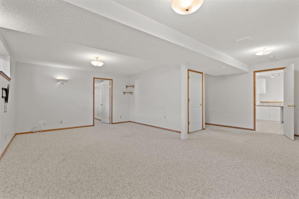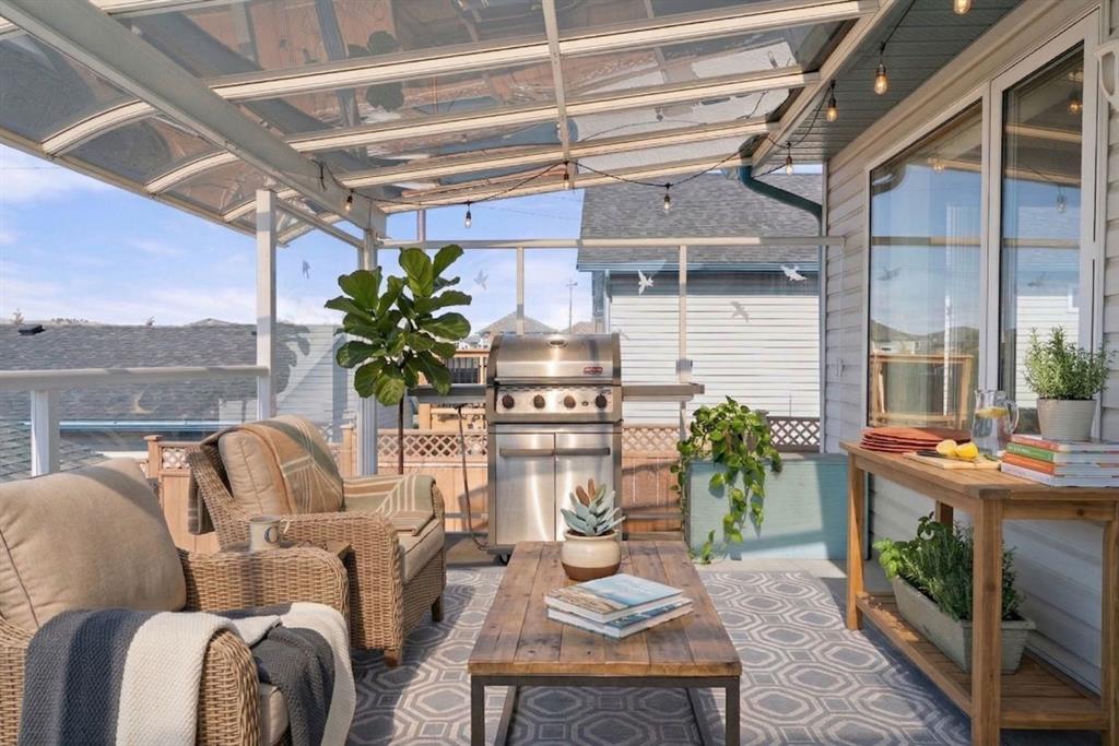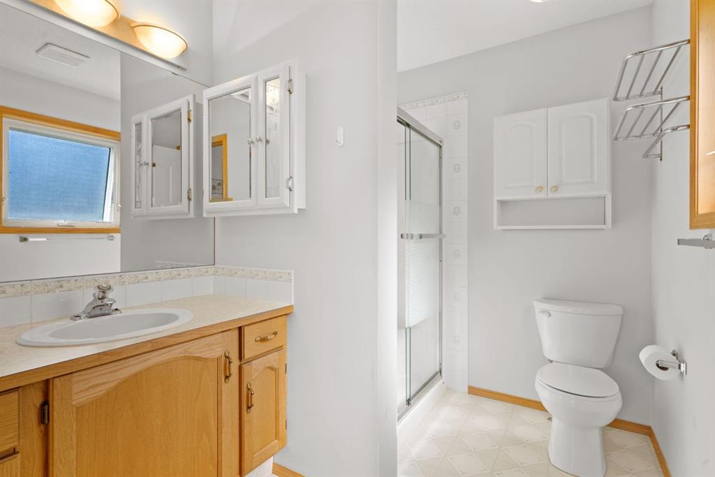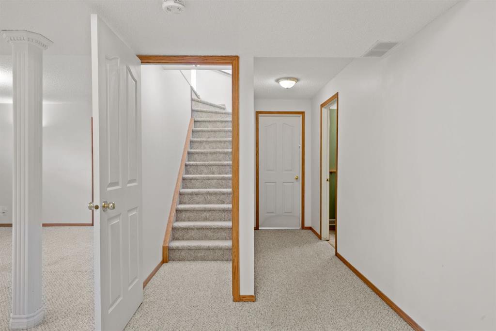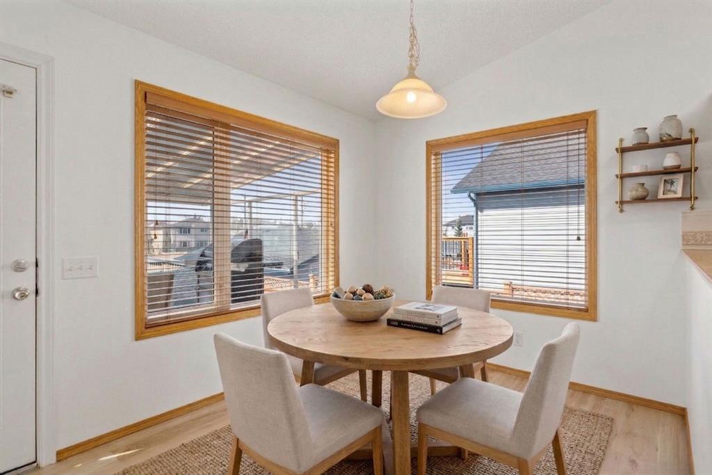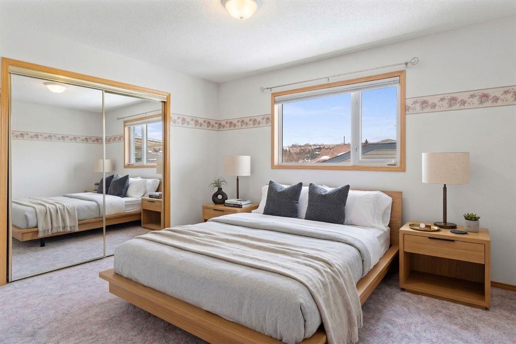 Beautifully maintained BUNGALOW in the desirable community of WEST TERRACE, just steps from Cochrane’s incredible pathway system & only a short WALK to the BOW River. This 3-bedroom, 3-bathroom home offers a functional layout with 2 bedrooms up OR enjoy your spacious primary retreat complete with PRIVATE 3 piece ensuite & use second bedroom as an OFFICE! 4 piece Bath PLUS convenience of MAIN FLOOR laundry on this level. Bright, inviting living area featuring cozy gas FIREPLACE, vaulted ceiling & a SUN FILLED kitchen enhanced by a skylight. SO much counter space. Walk in pantry! Recent updates include PAINT, vinyl plank flooring (2026), newer appliances – including gas stove (2025), dishwasher (2024), updated doors, furnace (2023), roof shingles (2021). Hidden screen doors for your comfort. All these updates will allow you to start enjoying this home right away – while providing peace of mind for years to come! The fully finished walk-up basement (Polycarbonate roof to protect stairs) offers additional living space, another bedroom (Window may not be egress to todays standards), 3 piece bth & flexibility for a variety of lifestyles. Multi generational living possible here! Potential for Suite subject to approval and permitting from the Town of Cochrane, in basement w/separate entrance. SOUTH outdoor living is a standout!!! GREAT curb appeal from the minute you pull up! Did I mention how much street parking you can enjoy?! Enjoy COVERED deck off kitchen overlooking McCaig’s Park – featuring Polycarbonate roof, dura-deck, new stairs (2025) & gas line for BBQ. The PRIVATE backyard (no neighbours behind you!) backs onto greenspace & includes large gated concrete pad. Trailer parking, addtl storage or perfect entertaining space. OVERSIZED DOUBLE GARAGE 23.3 x 23.3 is HEATED, wired with 220V & comes equipped w/air lines & compressor – ideal for hobbyists or anyone needing extra workspace! Back alley is bus route – ALWAYS plowed/graded. Addtl features include Vacu-Flo rough-in, underground water system front & back (professionally maintained) & prepaid lawn care services for the 2026 year! Nicely landscaped front/back with apple trees, cherry trees, and perennials. Rare opportunity to own well LOVED home – in PRIME location close to nature, pathways & all amenities. THREE schools in area. West Terrace has MANY playgrounds & is well connected by footpaths. Ride your bike, walk the dog or take the family for a walk along the path beside the Bow River & enjoy NATURE in your own neighbourhood! Easy access to everything downtown Cochrane offers. Close to Calgary. Be in mountains under 45 mins! 40 mins to Calgary Airport or Downtown. NO POLY B.