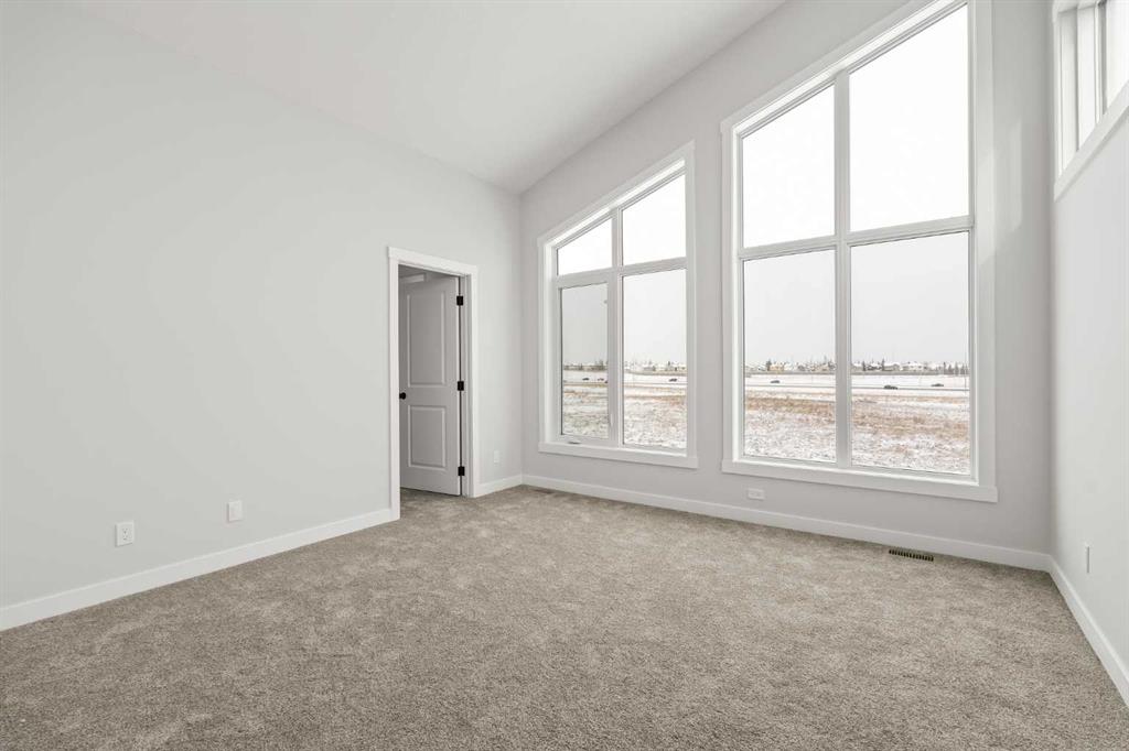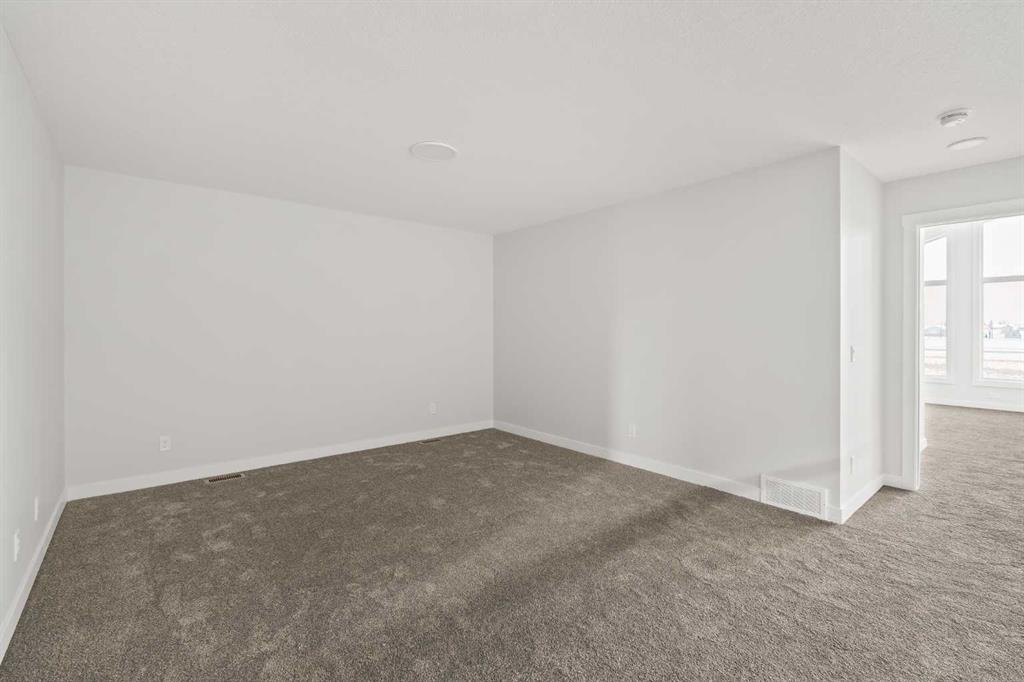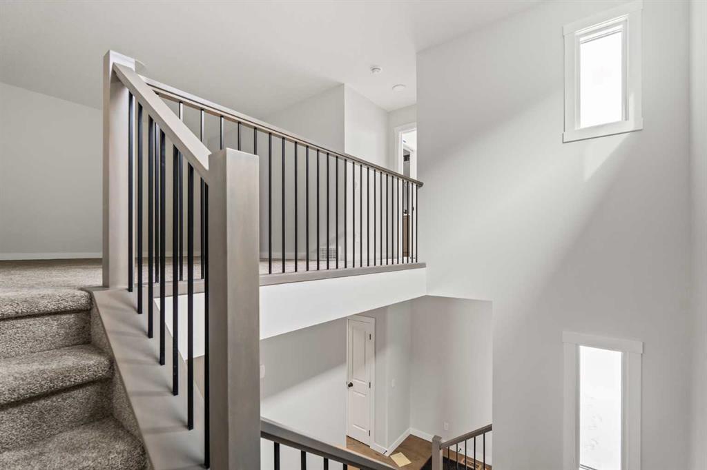 Welcome to the Purcell 24 – a brand new home with 2 living areas, 4 bedrooms, 2.5 bathrooms, a home office / flex space and an undeveloped walkout basement that awaits your imagination! Situated on a bright and sunny lot with a south-facing backyard, this beautiful new home has a Rustic Contemporary exterior and timeless finishing throughout. The main level is anchored by a bright, open-concept design and features a large central den/flex space – perfect for a home office or study. The stunning kitchen is finished with timeless white and wood shaker cabinetry, a large central island with seating, and a convenient walk-through pantry connecting directly to the mudroom and garage, offering exceptional everyday functionality. The kitchen seamlessly flows into the spacious living and dining areas, creating an inviting space for entertaining and family gatherings. A wall of windows and patio doors on the back of the home overlook the backyard and allow for optimal natural light to flow throughout the home with the backyard’s south exposure. The main level great room has a central fireplace that is perfect for cozy winter nights. On the upper level, a generous central bonus room thoughtfully separates the primary retreat from the other three bedrooms. The primary suite is a true retreat, complete with soaring vaulted ceilings, an expansive walk-in closet and a luxurious 5-piece ensuite featuring dual sinks, a soaker tub, and a walk-in tiled shower. Three additional bedrooms, a full 5-piece bathroom with dual sinks, and a dedicated laundry space complete the upper level. This brand-new home is fully move-in ready and showcases quality upgrades throughout and exceptional resale value and appeal with 4 bedrooms above grade, a dedicated home office space and a full walkout basement that offers endless future development possibilities. Both Builder Warranty and Alberta New Home Warranty are included, allowing you to purchase with confidence and peace of mind. Buy now and be settled right away into your brand new home!Â
