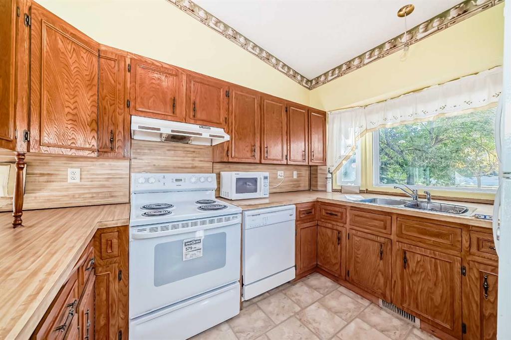 Invest in your future! This lovely 4-level split family home is ready for your personal touch and offers incredible suite potential. The main floor provides a spacious living room and dining room, with patio doors leading to backyard, plus a bright and spacious kitchen with plenty of storage. Upstairs, enjoy three generous bedrooms, including the primary bedroom with its 4-piece ensuite and walk-in closet, and a main 4-piece bath. The first lower level features a cozy family room with a fireplace, a fourth bedroom, a 2-piece bath, and laundry. A separate rear entrance leads out to the patio and the oversized double garage. The lowest level is unfinished and wide open for development, making it ideal for creating a separate secondary suite for income or multi-generational living (subject to approval). With its layout and separate access, the possibilities are endless!