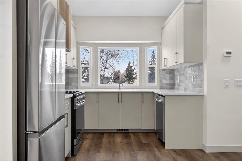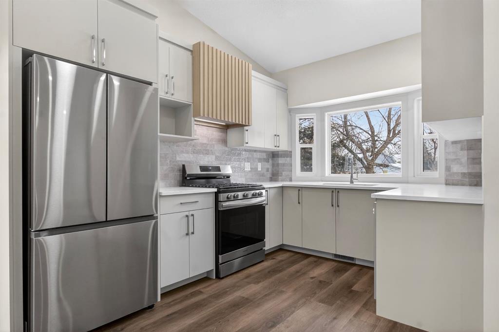 | FULLY RENOVATED | 6 BEDROOMS | 4 FULL BATHROOMS | LEGAL BASEMENT SUITE | OVERSIZED DOUBLE CAR GARAGE | Welcome to your extensively renovated home on a quiet street in the amenity rich community of Temple. This home has undergone a complete transformation that combines modern living and exceptional functionality. Thoughtful luxuries and high-end finishes are exemplified throughout the renovations which include TWO-TONE CABINETS, QUARTZ COUNTERTOPS, NEW LVP FLOORING, NEW CARPET, BRAND NEW FURNACES, UPDATED ELECTRICAL AND PLUMBING and more! From the moment you step inside, you’re greeted by a bright and airy open-concept layout enhanced by soaring vaulted ceilings that create an impressive sense of space. The sun-filled living room is both inviting and stylish, complete with a sleek electric fireplace — the perfect place to unwind or entertain. The heart of the home is the stunning, fully upgraded kitchen, showcasing elegant two-tone cabinetry, quartz countertops, and brand-new stainless-steel appliances. Seamlessly connected to the dining area, you’ll also find a beautiful built-in coffee bar with floating shelves, adding both function and a touch of luxury. Upstairs, retreat to your massive primary bedroom, featuring a spacious walk-in closet and a beautifully designed full ensuite with a stand-up shower. This level is completed by two additional generous bedrooms, a full bathroom, and a convenient upper-floor laundry area. The LEGAL BASEMENT SUITE is equally impressive and offers incredible flexibility or income potential. With a separate entrance, this legal suite includes a large living area, full kitchen, its own laundry, 3 BEDROOMS, and 2 FULL BATHROOMS — a rare and valuable feature in this community. Step outside to enjoy a huge backyard and an oversized double detached garage, providing ample space for parking and storage. Located near parks, playgrounds, schools, shopping centres, restaurants, LRT train station and just a 15-minute drive to downtown, you don’t want to miss the opportunity to make this home yours! Book a showing with your favourite realtor today.