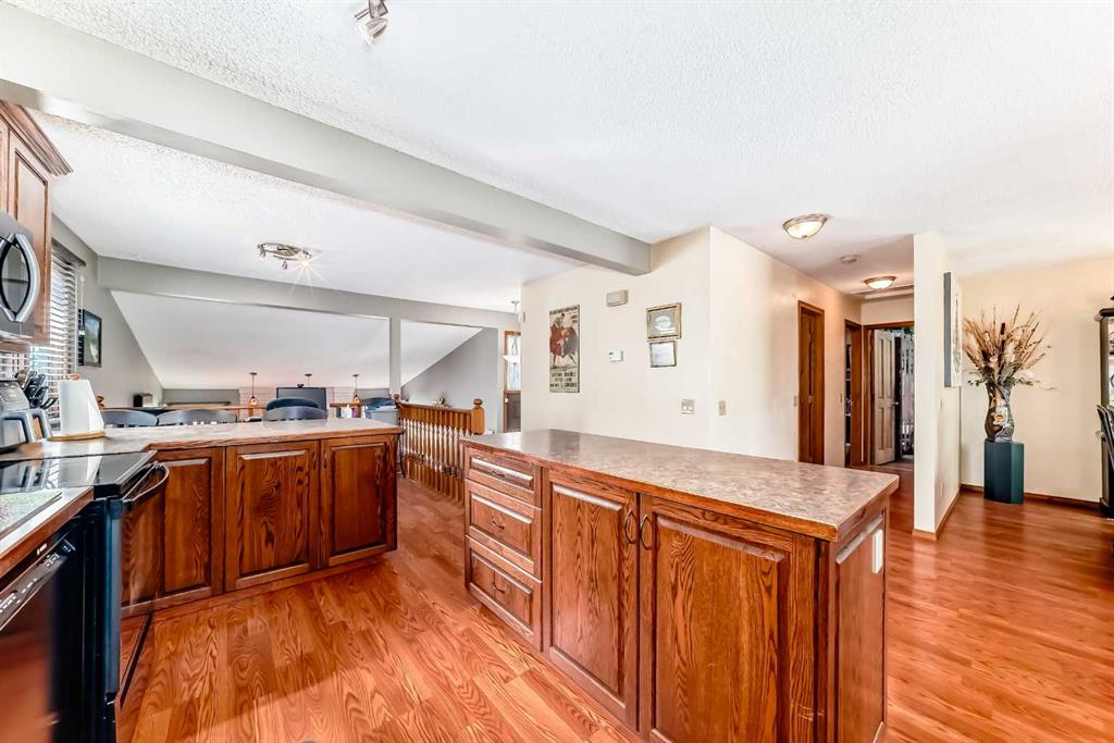 OPEN HOUSE THIS SAT AND SUN. 1-4! !Possibly the best location in town! This lovely family home backs onto Big Hill Creek park and the back yard is well treed and private with a relaxing view of the treed creek side park Our “deer” friends come and enjoy the solitude and fresh apples, crabapples and raspberries!. Original kitchen was renovated to add more room and a very nice island. The dining room was added to provide functional and enjoyable friend space ! The sunken living room with feature electric fireplace is private and very comfortable with vaulted ceiling.!!Your huge deck overlooks the babbling brook and park view! Have the wonderful morning sun to enjoy your breakfast coffee,a very private spot to relax and listen to the quiet. Access to a private laundry and storage is off the kitchen in the basement area .There is very convenient access to the jogging/walking paths of the Big Hill creek and the Bow River recreation system. Sheltered access under the deck to the legal basement suite .The bright and sunny basement suite has several big windows and is very comfortable and well set up. includes a gas fireplace and its own laundry .Each level has its own laundry . The attached double front drive garage has an extra long driveway for comfortable off street parking . What a great family neighbourhood ,close to elementary school, parks, and pathways. You must see the condition and beauty of this exceptional home! Make it yours ! (check out the video)