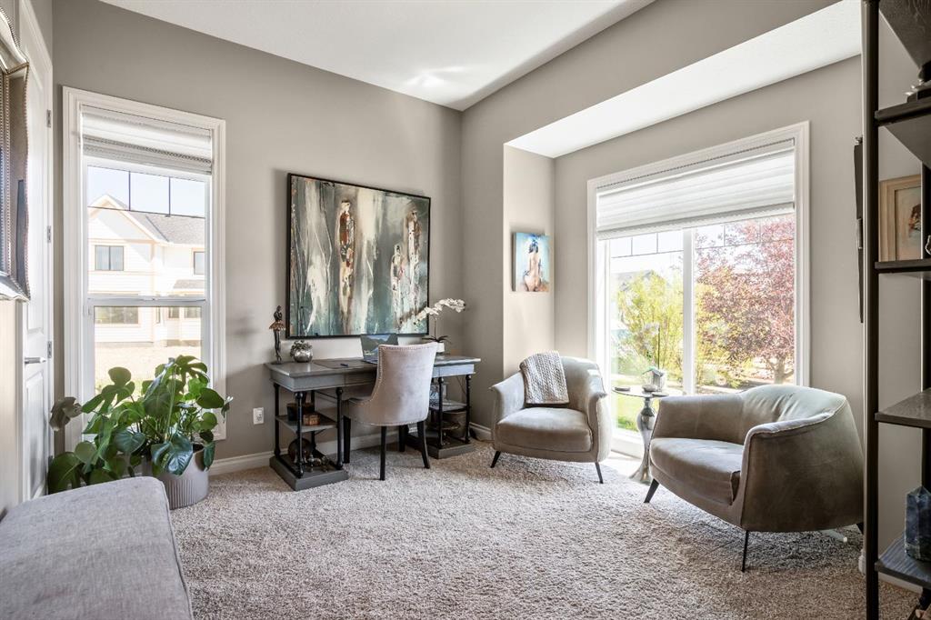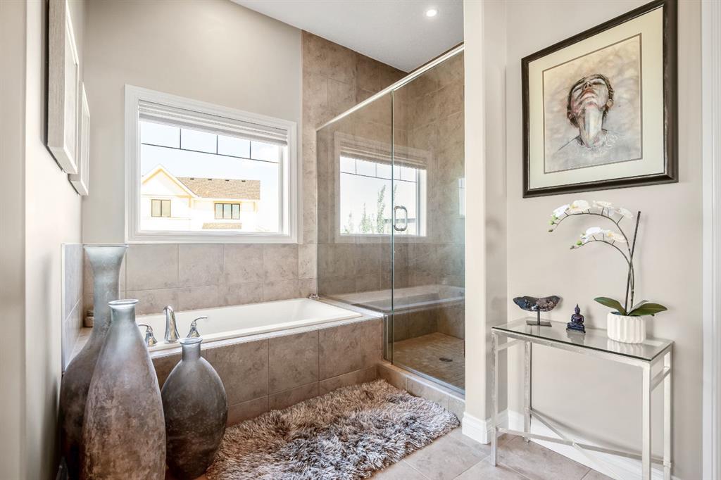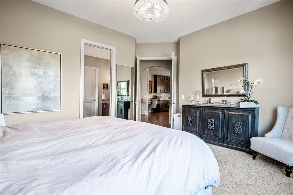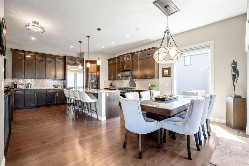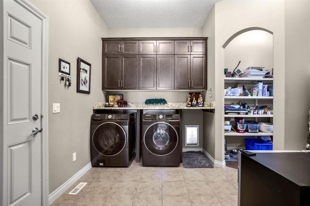 This beautifully finished bungalow in the prestigious community of Monterra offers an exceptional blend of elegance, comfort, and thoughtful upgrades, set on a beautifully landscaped quarter-acre lot with breathtaking north and west views. Inside, soaring 10’ ceilings, a grand spiral staircase, and a striking two-way gas fireplace framed by a custom walnut feature wall set the tone for the open, light-filled main floor. The gourmet kitchen is designed for both style and function, showcasing granite countertops, a walk-through pantry, a premium Thor gas range, commercial-style KitchenAid refrigerator, built-in microwave/second oven, and reverse osmosis water filtration, flowing seamlessly into the dining and living areas with custom built-ins—perfect for everyday living and entertaining.