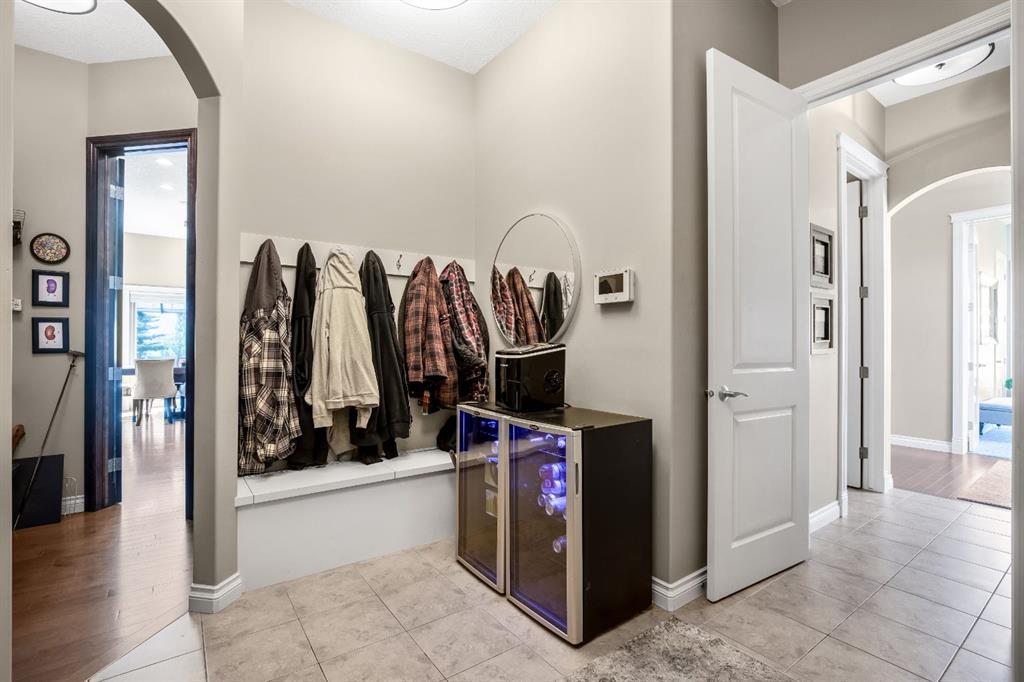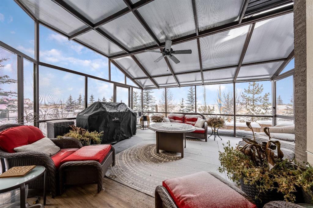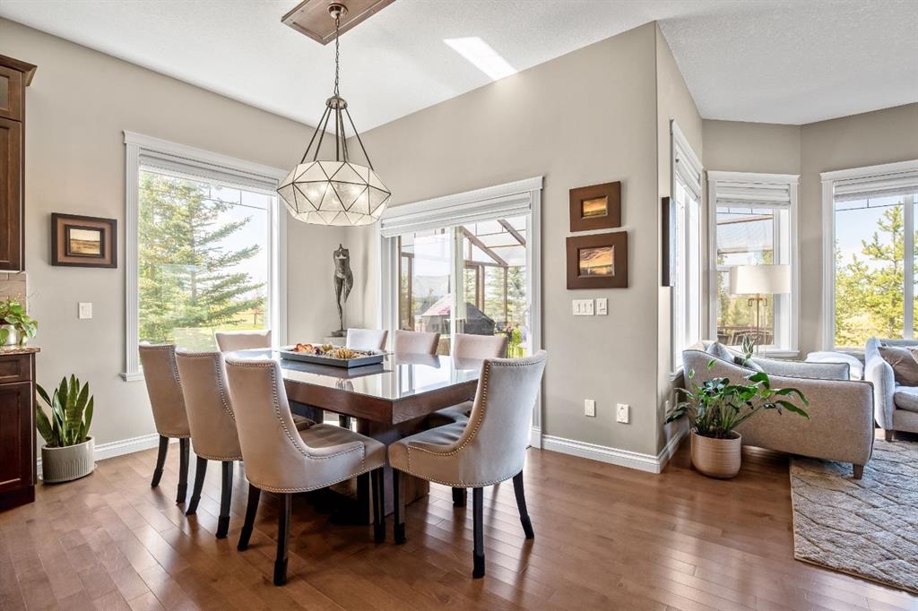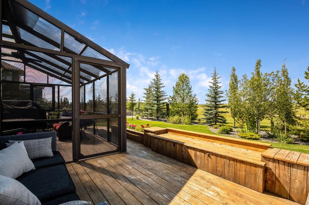 Recent upgrades include central air conditioning, a main-floor home speaker system, Hunter Douglas Silhouette blinds, a new roof with fascia and eavestroughs (2025), and new high end front and garage doors. The oversized, heated triple garage is exceptionally well equipped with 220V power, a large commercial sink, and plenty of room for vehicles, toys, and storage, with additional parking available. Outdoors, enjoy the expansive sunroom and tiered deck, all surrounded by your own private forest of trees and a dedicated dog run—creating a tranquil, secluded retreat. Located on a quiet street just minutes from Cochrane and a short drive to Canmore and Banff, this exceptional home delivers luxury, functionality, and the very best of city conveniences and country living in one remarkable package.