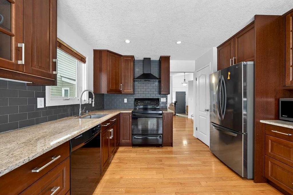*** Open House cancelled***MOVE-IN READY & BEAUTIFULLY UPDATED! Welcome to this freshly painted home in a mature community offering over 2,300 sq ft of fully finished living space with 4 bedrooms and 3 bathrooms, ideally backing directly onto Shawinigan Park with no neighbours behind. Located at 22 Shawinigan Rise SW, this exceptional family home is just a short walk to schools, shopping, and the LRT. Upon entry, you’ll appreciate the new paint throughout, gleaming hardwood floors, updated fixtures, and vaulted ceilings in the living and dining areas that create a bright, open space perfect for entertaining. The fully updated kitchen features stainless steel appliances, custom cabinetry, and stone countertops, ideal for the chef in the family. The main floor opens onto a rear deck overlooking the park, complete with a private gate to Shawinigan Park, professional landscaping, and an irrigation system. Upstairs, the spacious primary bedroom includes an updated 4-piece ensuite and built-in closet organizers, along with two additional bedrooms and another full bathroom. The fully developed lower level offers a HUGE family room with a tile surround gas fireplace, a fourth bedroom, and a full bathroom, perfect for guests or young adults, Finished 4th level with a rare 200+ sq ft private gym, laundry room with sink and a storage area with racks making this a truly outstanding home in an unbeatable location. Check out Virtual Link for more information.