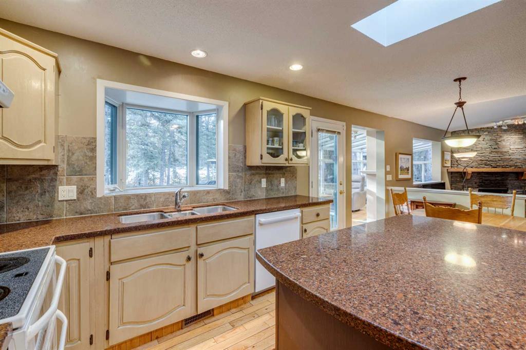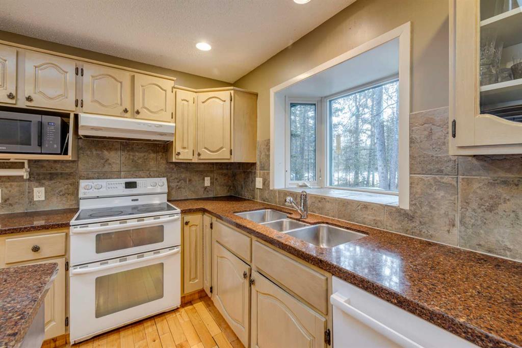 This inviting bungalow with a versatile loft sits on a spacious 0.5+ acre lot in a quiet cul de sac, offering privacy, outdoor enjoyment, and exceptional functionality. Backing directly onto the Redwood Meadows golf course, the setting feels open, peaceful, and connected to nature. Inside, the home features a bright, generous living room with a wood burning fireplace and a four season sunroom warmed by a gas fireplace, perfect for relaxing year round. The well designed layout includes 3 bedrooms and 2.5 bathrooms, an additional main floor office can be used as as a 4th bedroom providing comfortable space for families, guests, or downsizers who still want room to breathe. The loft adds tremendous flexibility and can serve as a home office, kids’ zone, TV lounge, or creative studio. The large lot also includes a hot tub, teepee, gazebo, a shed, gardens and sprinkler system; everything you need for easy, enjoyable outdoor living and entertaining. Convenient attached double garage and shop, large enough to accommodate a 40’+ motorhome, trailer, or recreational toys. With a full interior sani dump and 2 30 Amp hook-ups, it’s a dream setup for RV owners. Alternatively, the space can be transformed into an indoor sports court or an incredible multi use area, making it ideal for hobbyists or anyone needing extra workspace. This property blends comfort, practicality, and lifestyle in a way that’s hard to find. A rare opportunity in a prime cul de sac location.