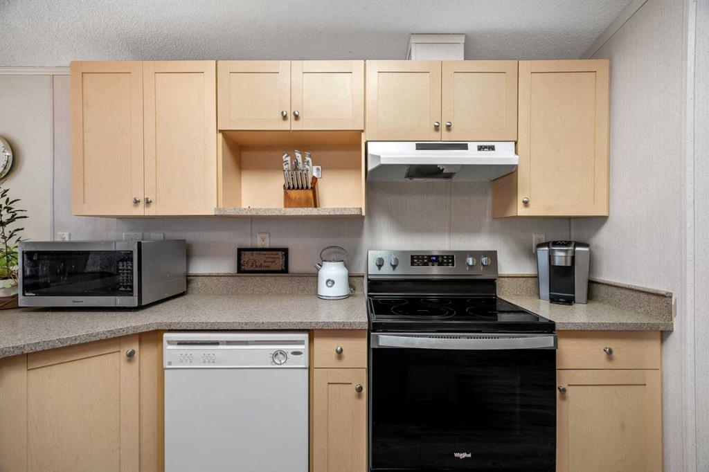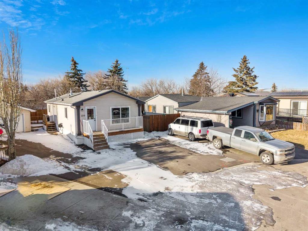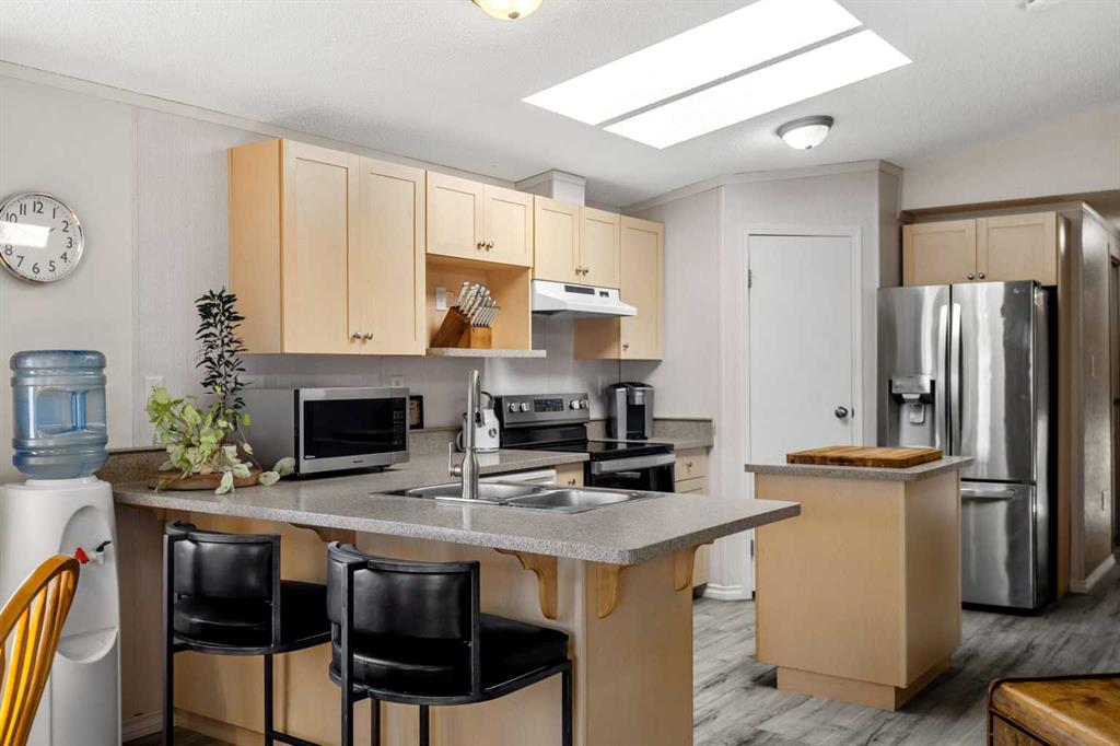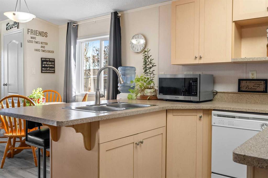 *** OPEN HOUSE SUNDAY JANUARY 25, 12:00-3:00 *** Why purchase an apartment or a townhome when you can own a detached home for less without any condo fees and still own the land. This well-maintained 2005 manufactured home sits on a spacious pie-shaped lot and includes anchored tie-downs—ideal for mortgage approval and insurance requirements. The property features an oversize 22×20 double detached garage with a new heater (2022), 220V power, and a sub-panel. Including the extra long driveway, this property can accommodate a total parking of at least 7 vehicles. Enjoy a fully fenced, private backyard—perfect for pets—along with a sunny front porch and a relaxing back deck, all located on a quiet cul-de-sac. The best part? You own the land outright with no added fees. Inside, this bright, sun-filled home offers approximately 1,000 sq. ft. of comfortable living space, showcasing pride of ownership throughout. Major updates include a new house roof (2021), garage roof (2023), hot water tank (2014), high-efficiency furnace (2005), a Costco storage shed (2023), and new asphalt (2023). Flooring, carpet, and interior paint have also been refreshed. The thoughtfully designed layout features 3 bedrooms and 2 full 4-pc bathrooms. The primary suite includes a generous walk-in closet and a private ensuite. The open-concept kitchen and living area is enhanced by vaulted ceilings, two skylights, a large pantry, centre island, breakfast bar, –perfect for everyday living and entertaining. Located within walking distance of Superstore, Tim Hortons, parks, schools, Bert Church Theatre, Big Springs Athletic Club, Genesis Place, and close to the city’s pathway system. Quick access to major routes makes commuting easy. This bright, clean, move-in-ready, low-maintenance property offers exceptional value—whether you’re a first-time buyer, downsizing, or seeking a smart investment opportunity.