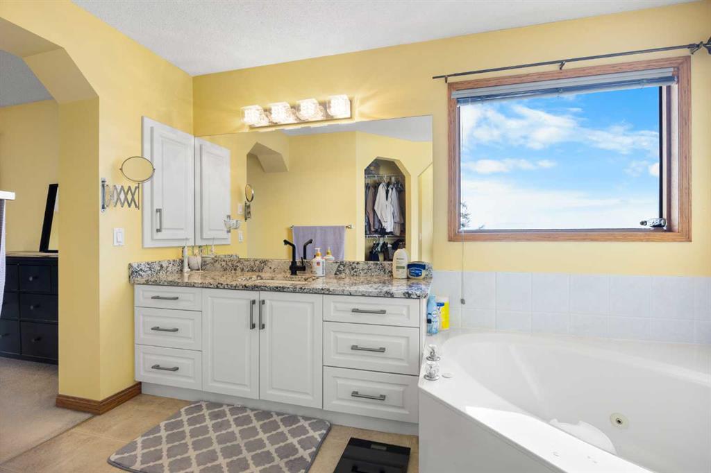 On the upper level, the curved staircase leads to 4 well-sized bedrooms, including a spacious Primary bedroom with walk-in closet and 4-piece ensuite featuring a jetted tub and separate shower. Three additional bedrooms and a 4-piece bath complete the upper level. All bathrooms feature granite countertops.