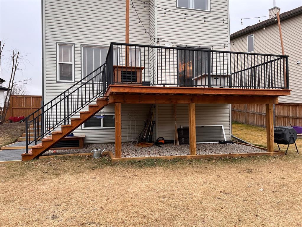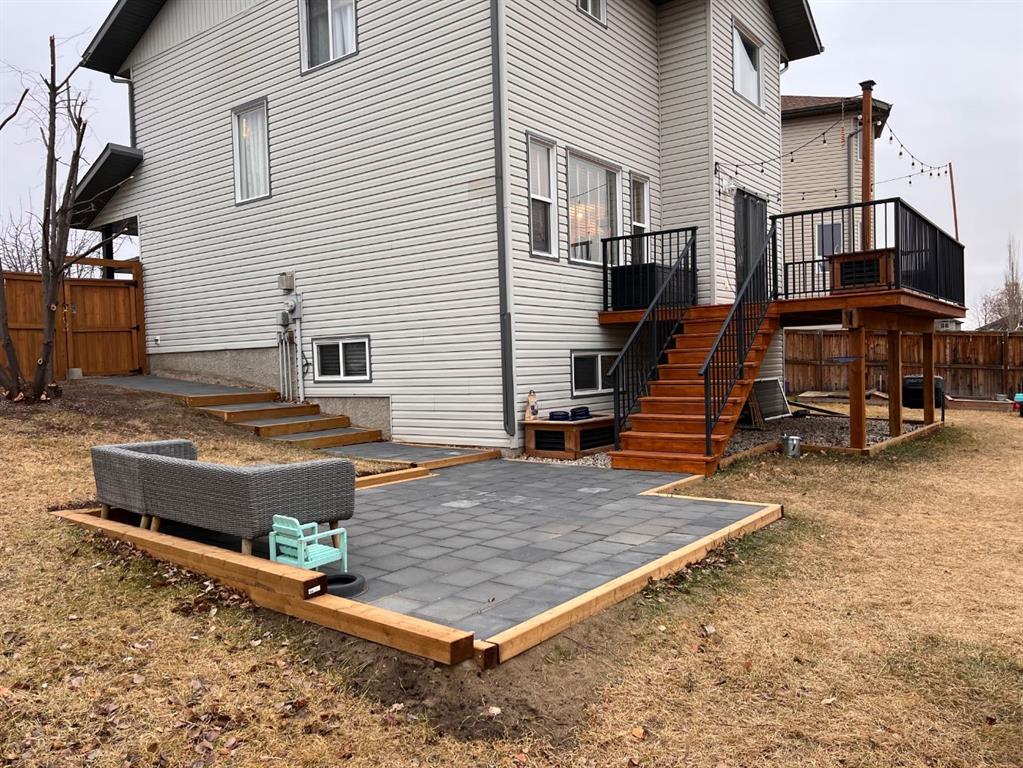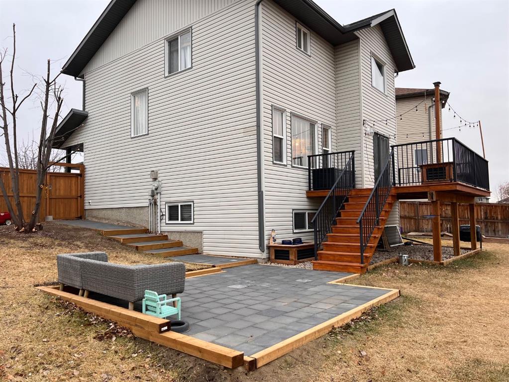 This home is immaculate. Situated in a quiet cut-de-sac with lovely neighbours and on a MASSIVE PIE LOT!! The home has had many updates. Walking up you will notice the new roof, garage door, exterior lights, some siding, and a few windows. The main floor and up stairs features new HARDWOOD floors that lead you to your open concept floor plan. The living room features a corner natural gas fireplace with bright window overlooking you back yard. The kitchen features mostly newer appliances, a kitchen island, loads of cupboards and counter space, A WALK THROUGH pantry with access to your garage. Completing the main floor is a 2 piece powder room, a lovely laundry area with custom live edge wood shelving and access to your double heated attached garage. The upper floor houses 3 bedrooms, a full 4 piece bathroom, linen closet and tasteful finishings. The primary is large enough for king furniture and has a large walk in closet and generous ensuite. The lower is mostly finished. The drywall is up it is just waiting for flooring paint and bathroom install. This home has one of the most amazing back yards for space. With a new custom built concrete patio and room for so much more!! MUST SEE!!