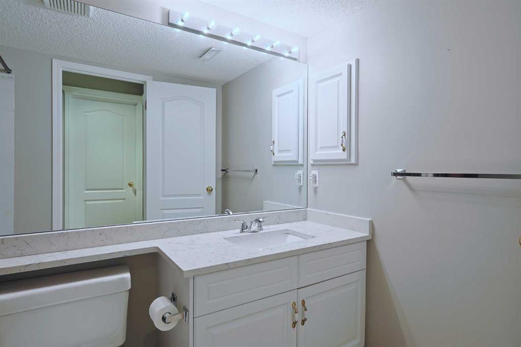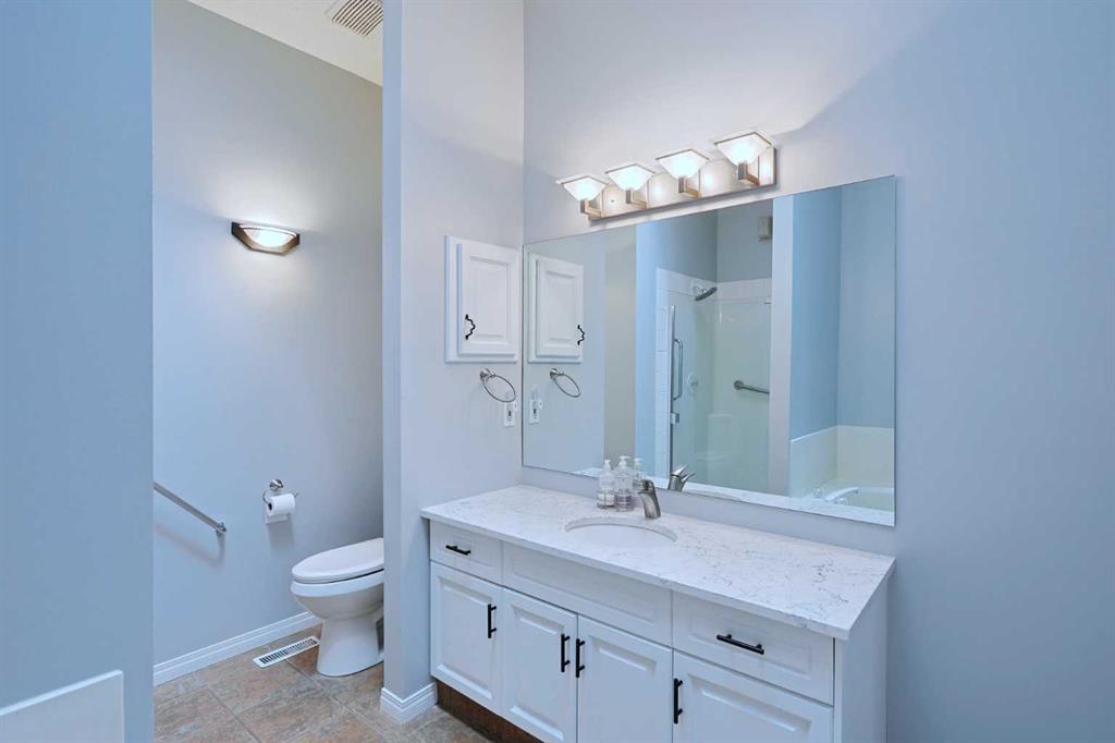 Tucked away in the exclusive SILVER SPRINGS VILLAS project is where you’ll find your next home…this beautifully updated bungalow in this collection of 32 lovely homes in the highly-desirable established community of Silver Springs. Walking distance to Silvercreek Park & just minutes to neighbourhood shopping, this fully finished villa enjoys central air & hardwood floors, 3 bedrooms + den, quartz countertops & is available for quick possession. You will love the bright & expansive feel of the main floor with its soaring vaulted ceilings, wonderful living room with wall-to-wall windows, formal dining room with alcove for your china cabinet & dining nook with bay window & French door to the big backyard deck. The galley-style kitchen has been beautifully updated & features quartz counters & subway tile backsplash, loads of cabinet space & stainless steel appliances. Main floor has 2 bedrooms including the primary bedroom with vaulted ceilings, large walk-in closet & ensuite with skylight & vaulted ceilings, quartz counters & tile floors, soaker tub & separate shower. The lower level is finished with a big rec room with stone-facing gas fireplace, huge 3rd bedroom with walk-in closet, another full bathroom & an office/library/exercise room with built-in shelving. Main floor laundry with built-in cabinets & side-by-side Kenmore washer & dryer. Dedicated main floor home office with wainscotting & French door. Lower level also has 2 great storage rooms/workshop with built-in shelves. New hot water tank in 2020 & roof shingles in 2019. Nearby Silvercreek Park connects to the Bow River Pathway system – which leads to Bowmont Park & its 164 hectares of winding trails, sports fields, picnic sites & off-leash area overlooking the Bow River. And to top it off…you won’t need your lawn mower or snow shovel because mowing the lawn & shoveling the snow is taken care of for you with the monthly maintenance fees. Neighbourhood shopping & schools are all within easy reach, & with the convenience of its prime location close to Nose Hill Drive, Crowchild & Stoney Trails means you are only minutes to popular Crowchild Twin Arenas, Crowfoot Centre & LRT, major retail centers, University of Calgary, hospitals & downtown.