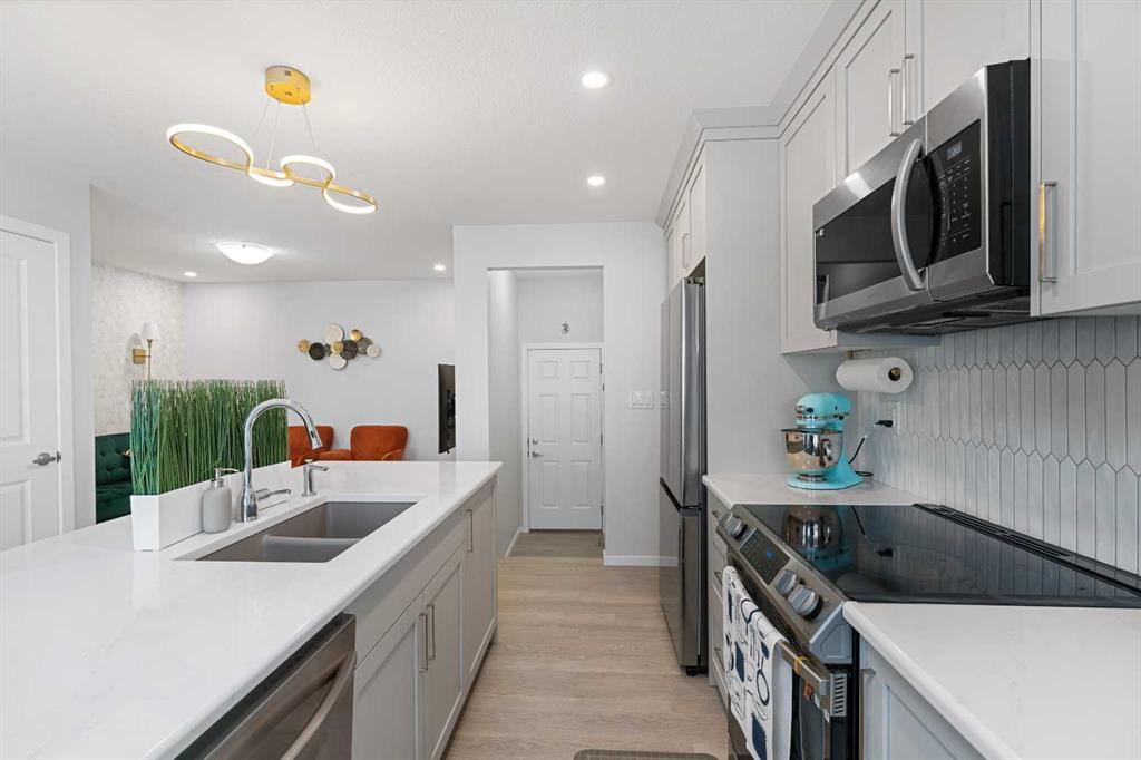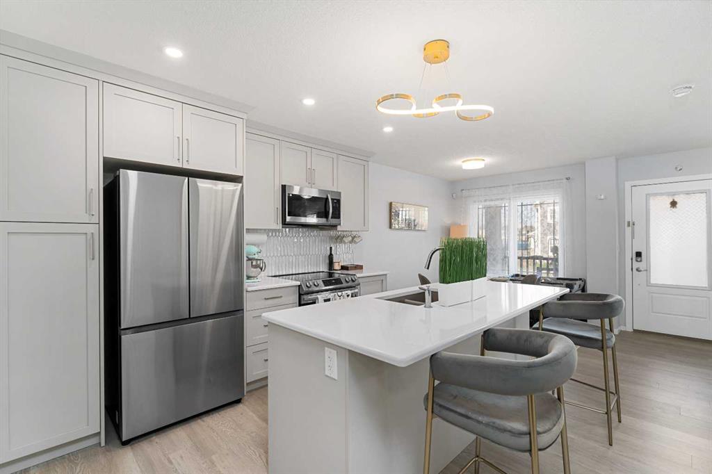 OPEN HOUSE Saturday November 1st 11am – 1pm!!! NO CONDO FEES – PLENTY OF UPGRADES FROM BUILDER STAGE – FULL HEIGHT CABINETS IN KITCHEN – 10MM GLASS SURROUND SHOWER IN PRIMARY SUITE – AIR CONDITIONING – STEPS FROM BRAND NEW SCHOOL AND TOT LOT. Welcome to the home you’ve been dreaming of! This stunning, custom-designed 2-story townhome is perfectly situated kitty corner from a brand-new school currently being constructed and taking applications soon, just a stone’s throw from Osborne Park and surrounded by everything you need in one of Airdrie’s most coveted family-friendly neighborhoods. Picture yourself sipping coffee on your covered front veranda, watching your kids stroll to school. Step inside to an open-concept layout flooded with natural light, sleek premium vinyl plank floors, and a stunning upgraded lighting package throughout. The kitchen is a chef’s dream with stainless steel appliances, pot lighting, full-height cabinetry, a large pantry with an embossed glass door, and a massive island—perfect for meal prep or gathering with friends. The living room invites you to relax and unwind while you enjoy your air conditioning on those hot days, with a cozy vibe that’s perfect for family nights. Off the living room, you’ll find a convenient 2-piece powder room and access to your oversized double garage, which is ideal for winter parking or your dream workshop. Upstairs, retreat to the spacious primary bedroom with peaceful neighborhood views, a walk-in closet, and a private en-suite featuring a gorgeous floor-to-ceiling tiled glass shower and quartz countertops. Two more generously sized bedrooms and another upgraded 4-piece bathroom give you endless options for family or home office space. Plus, the laundry room is conveniently located upstairs, and your rear-facing deck is the perfect spot to catch some fresh air. The basement is a blank slate with a bathroom rough-in and large window—ready for you to add your personal touch, whether that’s a gym, home office, or more living space. With all these incredible upgrades and an unbeatable location, this home won’t last long. Book your private viewing today!