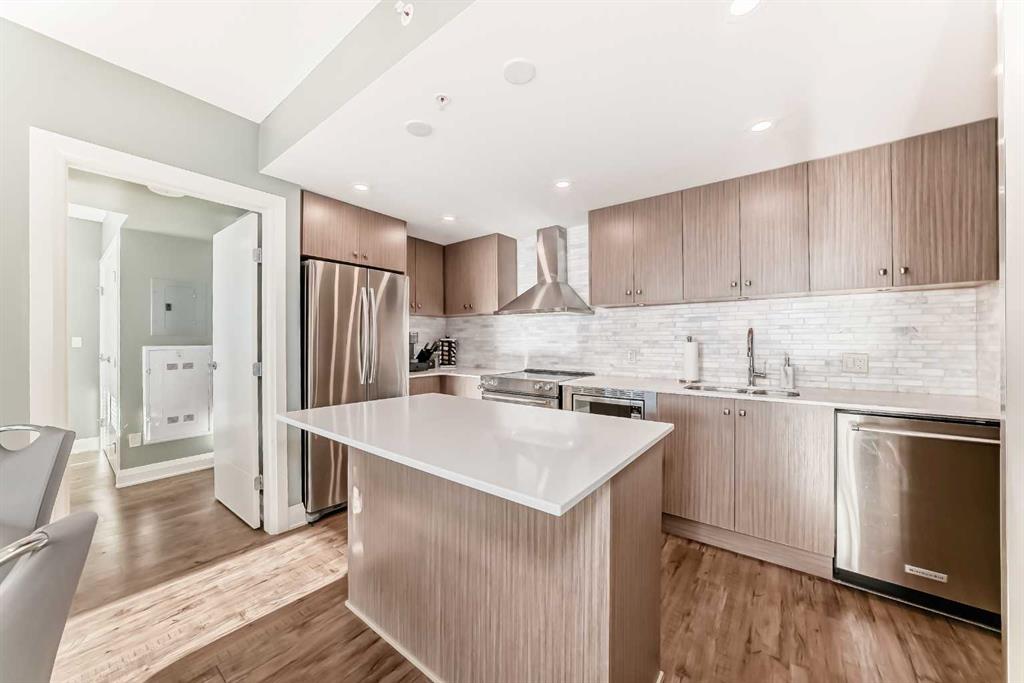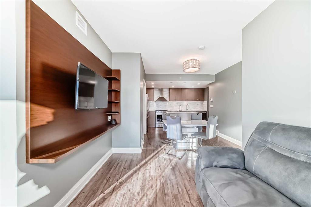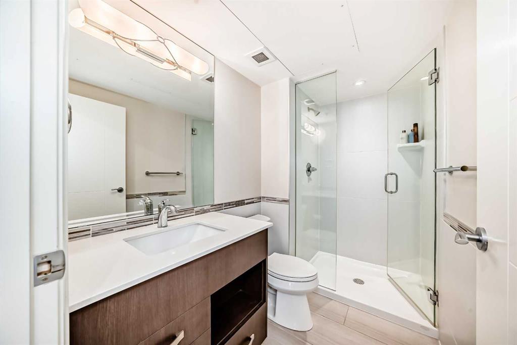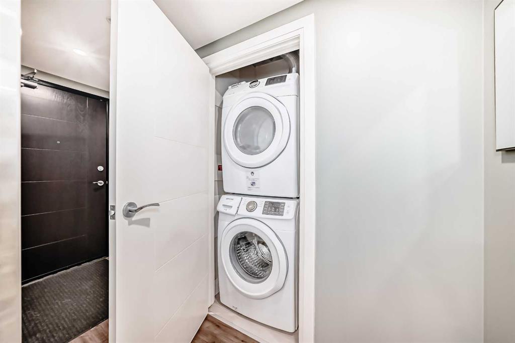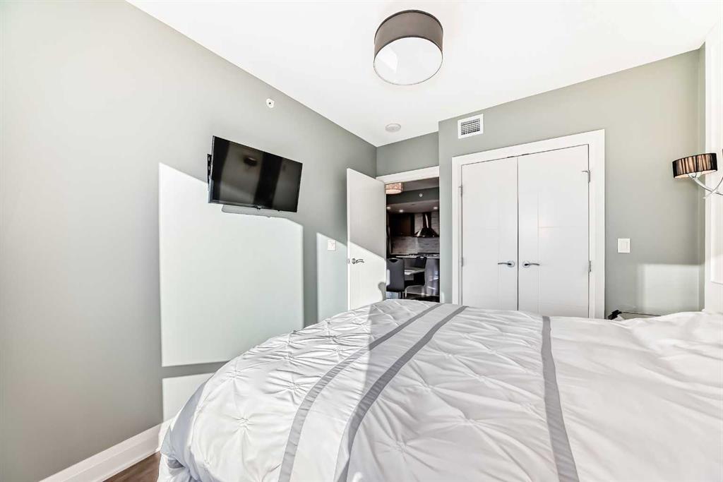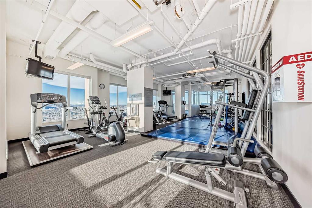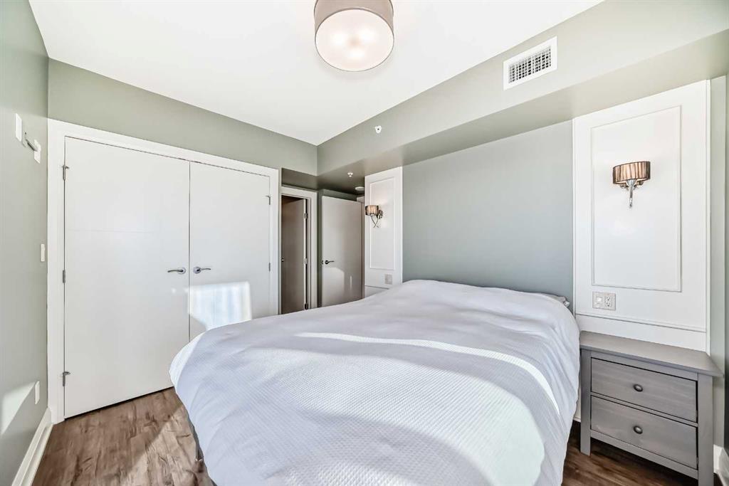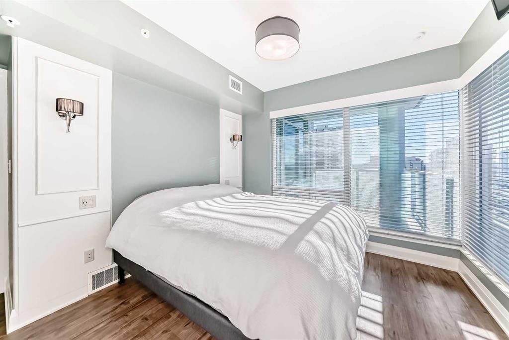 Floor-to-ceiling windows frame breathtaking mountain and river views, flooding the space with natural light. The interior boasts premium walnut built-ins, custom bedroom paneling, and a chef-inspired kitchen with an upgraded central island and quartz finishes. Both bedrooms act as private retreats, flanking the living area for maximum privacy. Perfect for investors, professionals and empty nesters. Beyond the unit, enjoy executive amenities including a 36th-floor Sky Gym and 24/7 concierge. Prime West End location steps to the river pathway, C-Train, downtown, and trendy Kensington. Condo fees are $610.35/month, including all utilities except electricity.