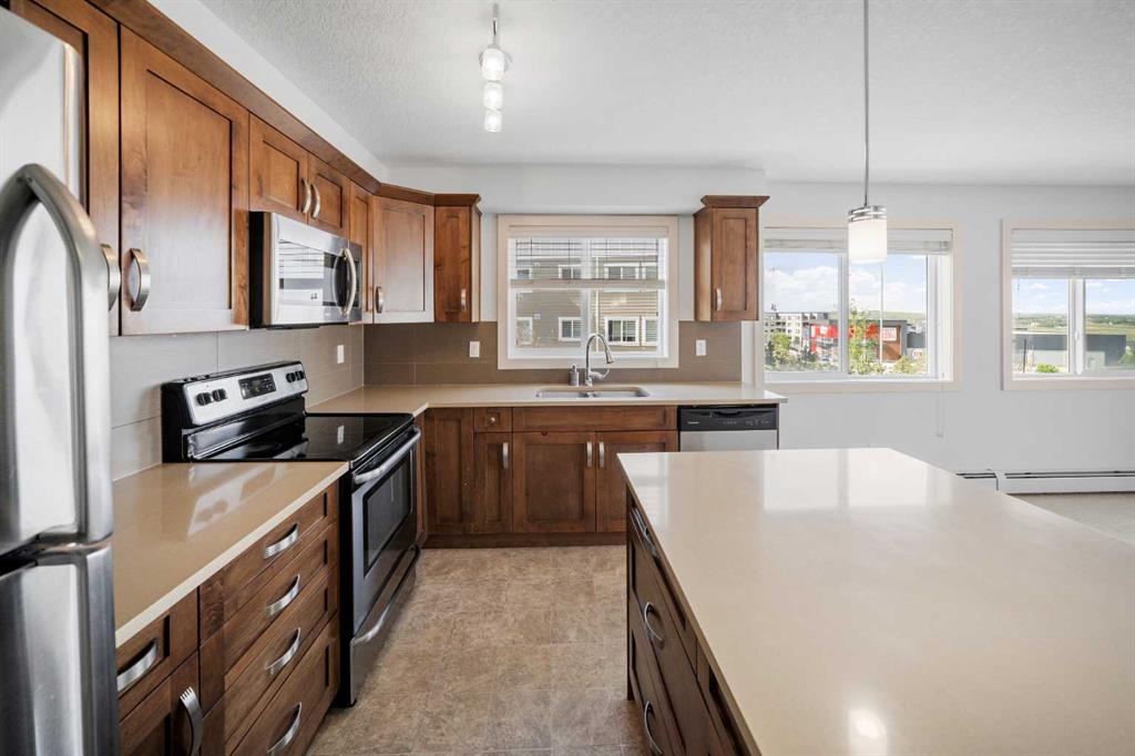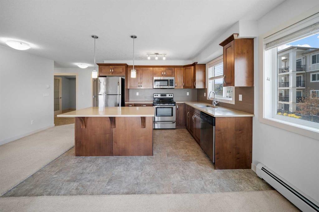 TURNKEY INVESTMENT OPPORTUNITY, CORNER UNIT!! 2 BED, 2 BATH, PLUS A DEN…THIS FLOOR PLAN RARELY COMES AVAILIBLE! Natural light fills this property with numerous windows and an open concept layout in the desirable community of Sage Hill. As you enter you will be greeted by high ceilings and a neutral color tone will lead you to a large kitchen that perfect for the aspiring chef in the family. Fitted with thick quartz countertops, corner cabinets allowing for tons of storage, a stainless-steel appliance package, and a spacious eat-up island that is ideal for entertaining while providing plenty of counterspace. The bright living room provides plenty of space for seating as well as a dedicated dinning area. It also provides direct access to a private patio that is complete with a gas line and endless serene views. The primary bedroom is a great size and completed with a walkthrough closet and a 4-piece ensuite The second bedroom is ideally located on the opposite side of the condo for privacy, is spacious, and conveniently near the second full 4-piece bathroom. In addition, there is a den that is perfect for a home office, games room, or other great uses that meet your lifestyle. Titled underground heated and secured parking, a storage locker separate from the unit, in suite laundry, and a well managed condo complex are just a few additional features. Top it off with a fantastic location with easy access to shops, restaurants, transit, and major road ways.
