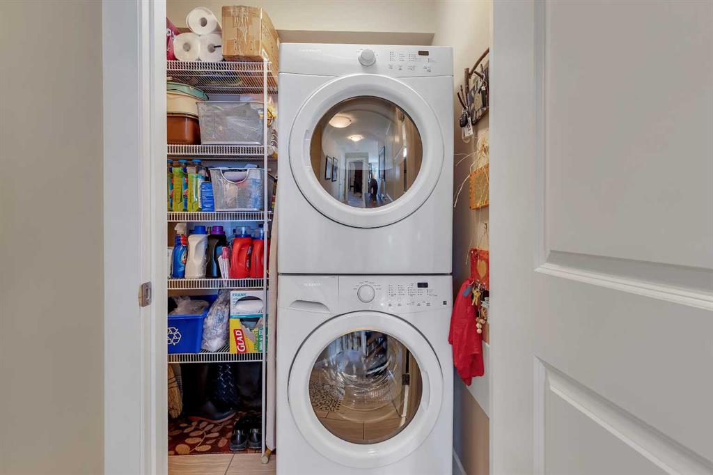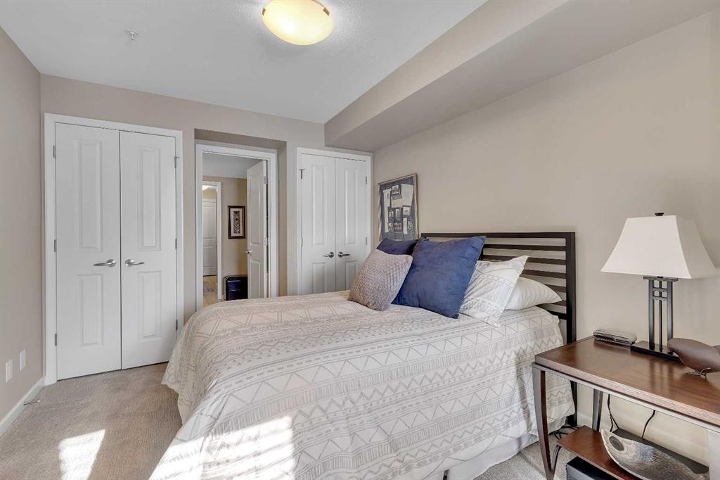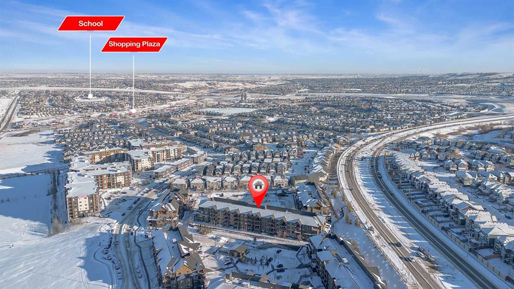 Stunning 1145 sq. Ft apartment, 2 heated underground titled parking stalls, 2 Bedrooms + Den, Corner End-Unit in the Luxurious Adult (18+) Complex of Kincora Summit. This Elegant Condo offers spacious open concept w/ In-Floor Heating, A/C & designer touches throughout, custom built in shelves in pantry, laundry & storage closets, living Room with Access to private covered balcony, gourmet kitchen w/ Quartz Counters & upgraded extended cabinets, Island, top of the line Stainless Steel Appliances & Tiled Floors, Master Quarter with Walk-through Closet & 3 pc Ensuite, Second Bedroom & Large Den with built in custom cabinets, 4 pc Main Bath, Convenient In-Suite Laundry, Titled Storage Locker on the Same Floor next to Elevator & Secure Titled Underground Parking Stalls. Well, Maintained Complex w/ Ample Visitor Parking. Walking Distance to Walmart, T&T Market, McDonalds and a variety of other restaurants and services. Also close to green spaces, bus & all other amenities. Easy access to Stoney Trail, Airport & University of Calgary. This unit shows pride of ownership. Click on link to view 360 tour.