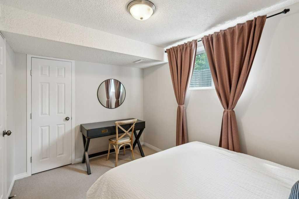 The chef-inspired maple kitchen gleams with granite countertops, a breakfast bar, stainless steel appliances, and a corner walk-in pantry, overlooking a spacious family room and a bright breakfast nook—perfect for daily living and entertaining. The walkout lower level adds two more bedrooms, a full bathroom, and a living area with a summer kitchen, plus oversized windows that flood the space with natural light. This level was previously configured as an Airbnb and may be adaptable to a legal secondary suite (subject to city approvals). The additional bedrooms can also serve as a home office or gym, and an interior bonus room with a skylight enhances both practicality and style.