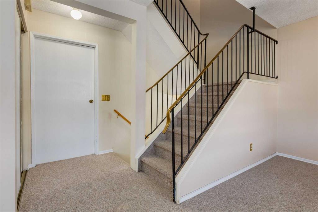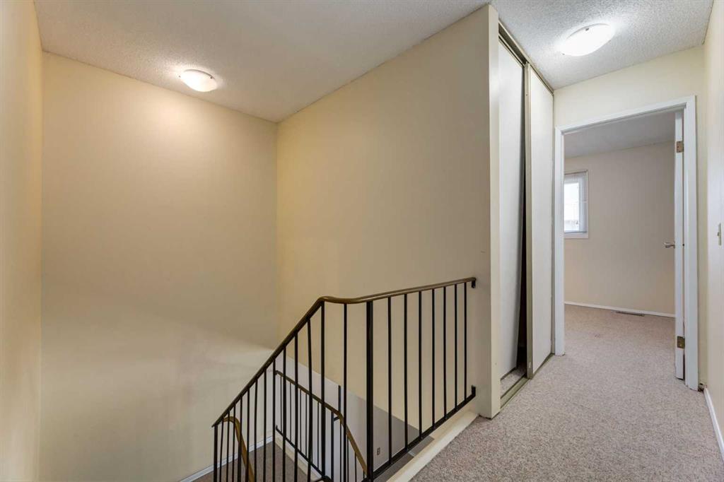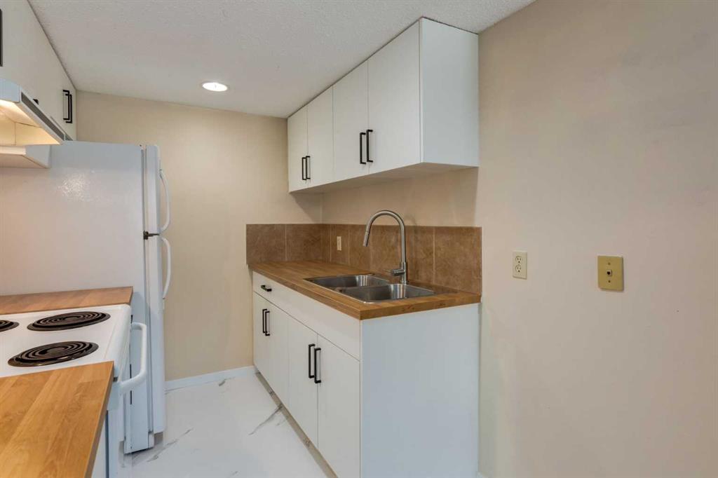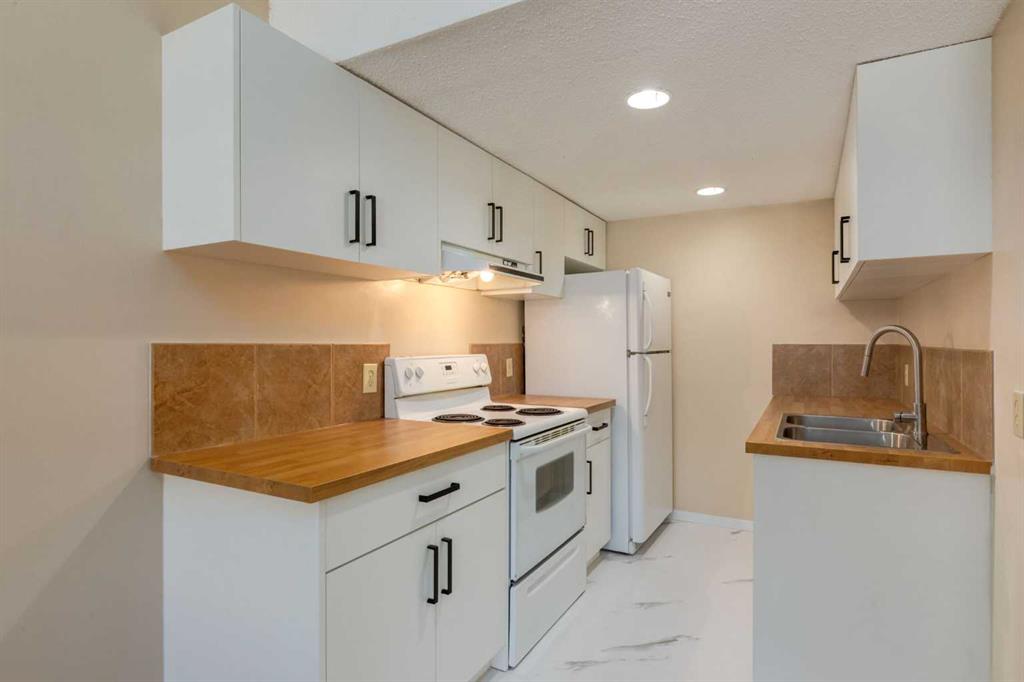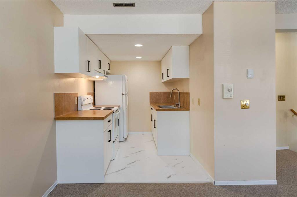 This is the perfect space to call home for a first time home buyer, anybody downsizing or an investor.  Upon entry, you’re greeted by a spacious foyer that leads to the bright and functional main living area. The kitchen is equipped with classic white appliances, a timeless travertine tile backsplash, durable butcher block countertops, and updated white cabinetry that offers a clean and modern aesthetic.  The open concept living and dining area features large west facing, vinyl windows that fill the space with natural light throughout the day. Just off the living room, a private balcony offers the perfect spot to enjoy your morning coffee or unwind in the evening sun.  Also on this level is a combined laundry room, utility area, and additional storage space for your convenience.  Upstairs, you’ll find two generously sized bedrooms situated on opposite ends of the hallway, each with its own walk-in closet.  A well appointed 4 piece bathroom and another expansive storage area complete the upper floor.  This home includes one assigned parking stall (#221), and ample street parking is available for additional vehicles or guests.  Don’t miss the chance to own this thoughtfully designed and move-in-ready property!