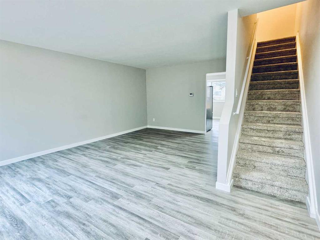 WOW! This Fully Renovated Townhouse backs onto park offers beautiful views and sunny West exposure with plenty of natural light throughout. Great Location: situated near schools, shopping centers and downtown. Recent renovations in March 2025 include a Brand New Kitchen, New luxury vinyl plank flooring throughout main, New Carpet upstairs, New 4-piece Bathroom upstairs, New Interior and Exterior Paints, New Baseboard, and modern lighting throughout. Once you step into this home, you’ll find a bright Living Room that flows seamlessly into the kitchen and dining area, perfect for families who like to entertain. Upstairs, the massive master bedroom easily accommodates king-sized furniture, 2 additional good-sized bedrooms with views next to luxurious 4-piece bathroom. The unfinished basement has a laundry area, newer furnace and hot water tank (both replaced in 2017). Step out onto your private patio looking out to the beautifully landscaped greenspace—a serene space to enjoy your morning coffee. This well-managed building has newer windows and 1 assigned parking. Whether you’re a first-time buyer or an investor, this unit offers prime location near the Sunridge Mall, Airport and City Centre. Easy Access to Downtown, and major routes like Highway #1 and Deerfoot Trail. Don’t miss this home!