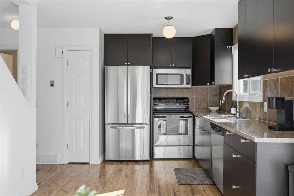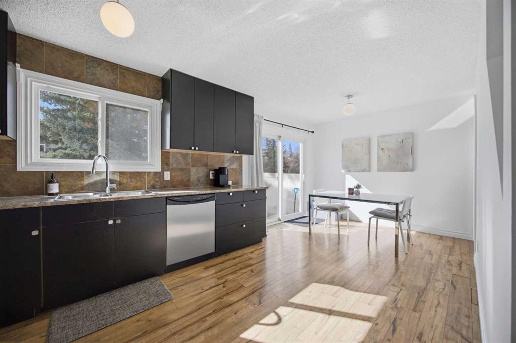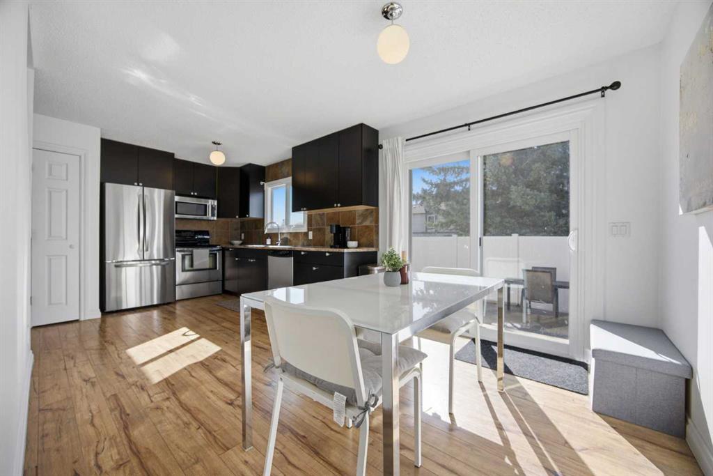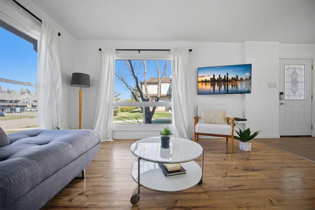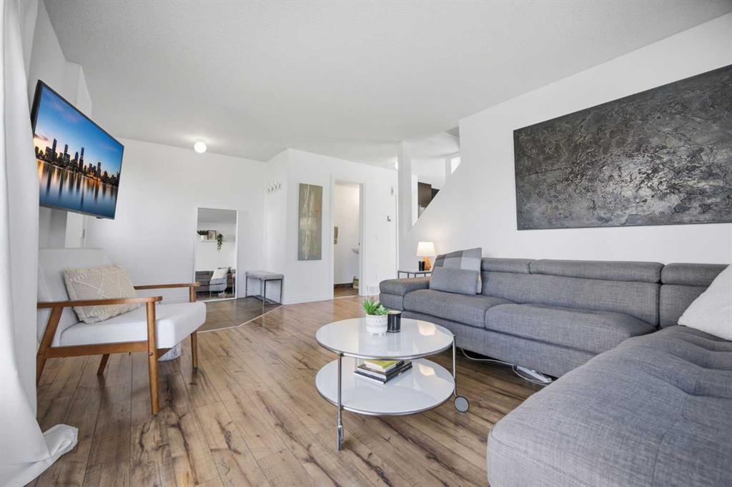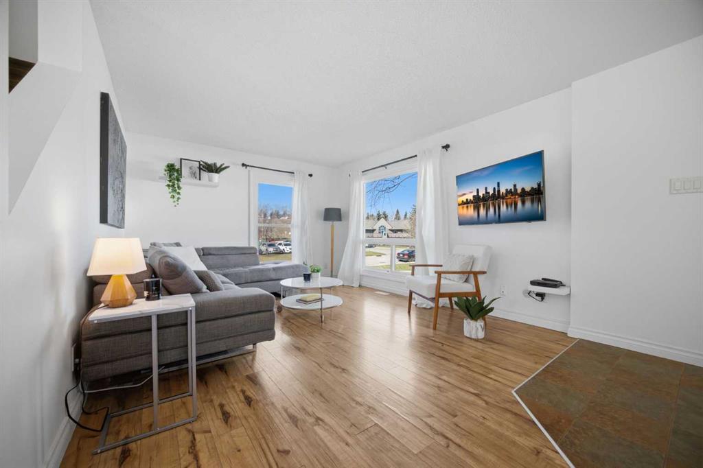 **Open House Saturday, April 25 12:00pm-3pm**| Don’t miss this attractively priced and thoughtfully renovated 2-bedroom + den END UNIT boasting 1,168 square feet of bright, open living area. Recent updates provide peace of mind and modern appeal, including newer flooring, newer windows, a full kitchen renovation, and updated fencing. On the main floor you will be immediately greeted with a sunny and spacious living room flowing into renovated kitchen and dining room with sliding patio doors. The upstairs features a generous sized primary bedroom, 4 piece bathroom, second bedroom and a versatile den. Enjoy your south facing private backyard, which features a beautiful stamped concrete patio for a low-maintenance outdoor retreat.