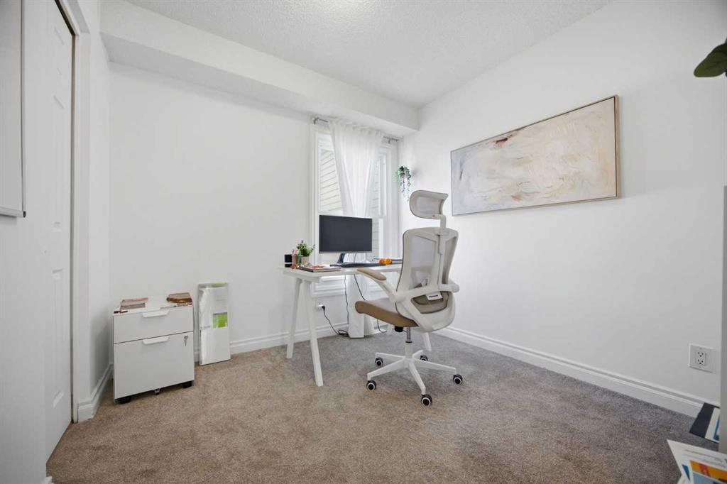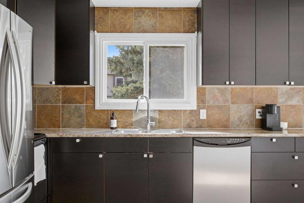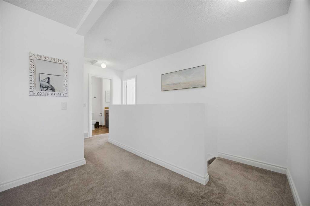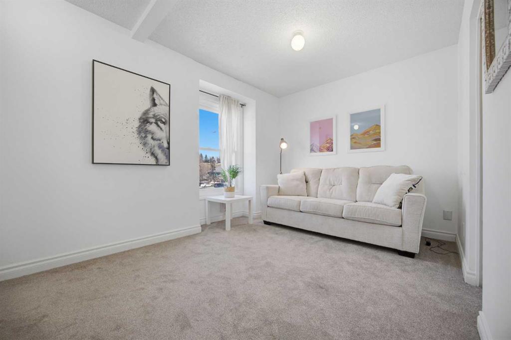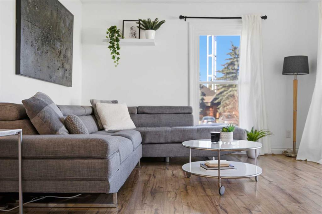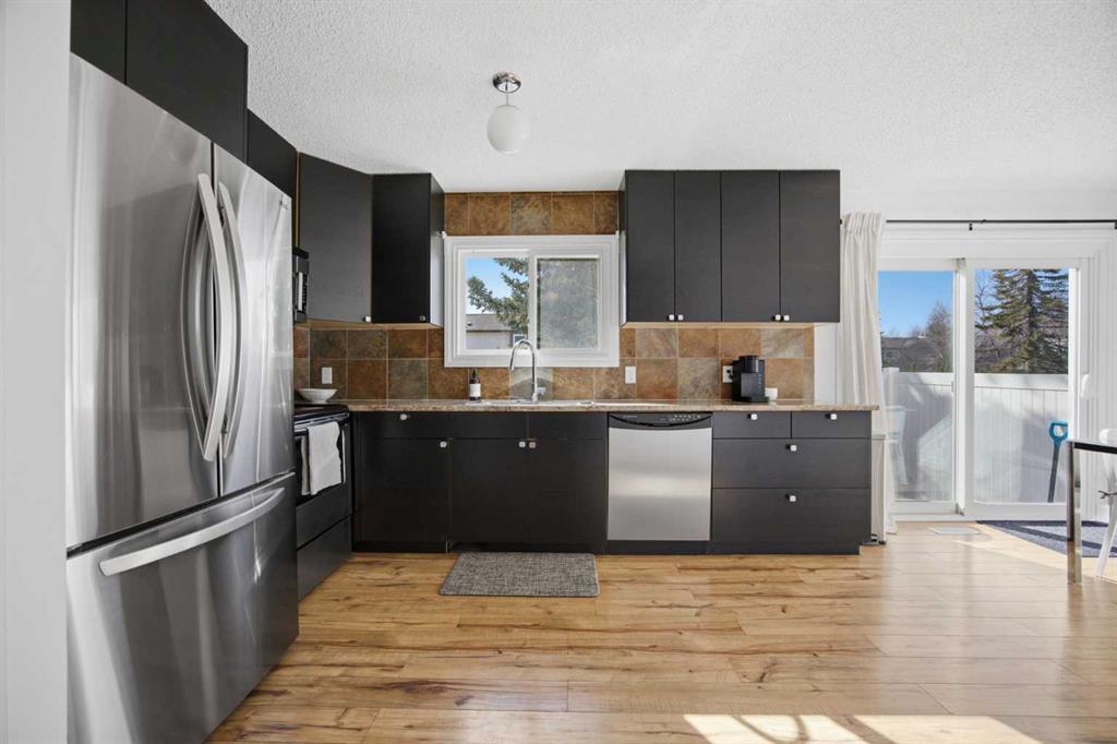 **Open House Saturday, April 25 12:00pm-3pm**| Don’t miss this attractively priced and thoughtfully renovated 2-bedroom + den END UNIT boasting 1,168 square feet of bright, open living area. Recent updates provide peace of mind and modern appeal, including newer flooring, newer windows, a full kitchen renovation, and updated fencing. On the main floor you will be immediately greeted with a sunny and spacious living room flowing into renovated kitchen and dining room with sliding patio doors. The upstairs features a generous sized primary bedroom, 4 piece bathroom, second bedroom and a versatile den. Enjoy your south facing private backyard, which features a beautiful stamped concrete patio for a low-maintenance outdoor retreat.