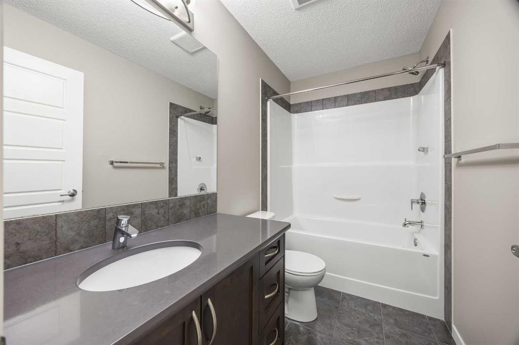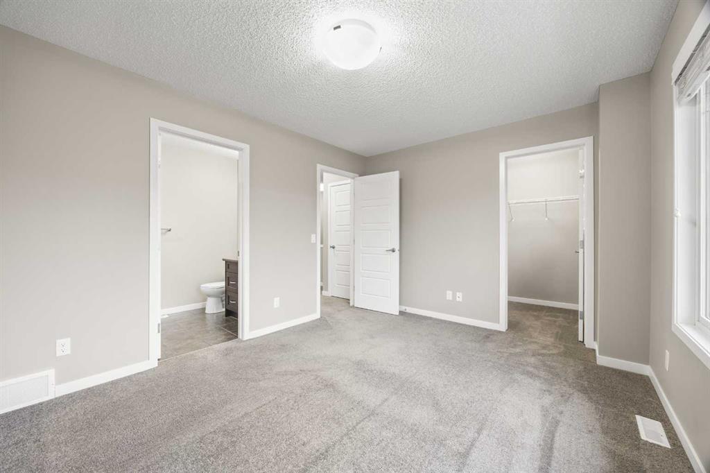 On the upper level, the spacious Primary bedroom features a large window, a walk-in closet with window for added light, and a full ensuite bath with quartz countertops. Two additional bedrooms and a 4-piece bath provide comfortable space for family or guests. The partially finished basement offers practical living with Laundry access and leads to the Double attached garage, complete with built-in ceiling shelves for extra storage.