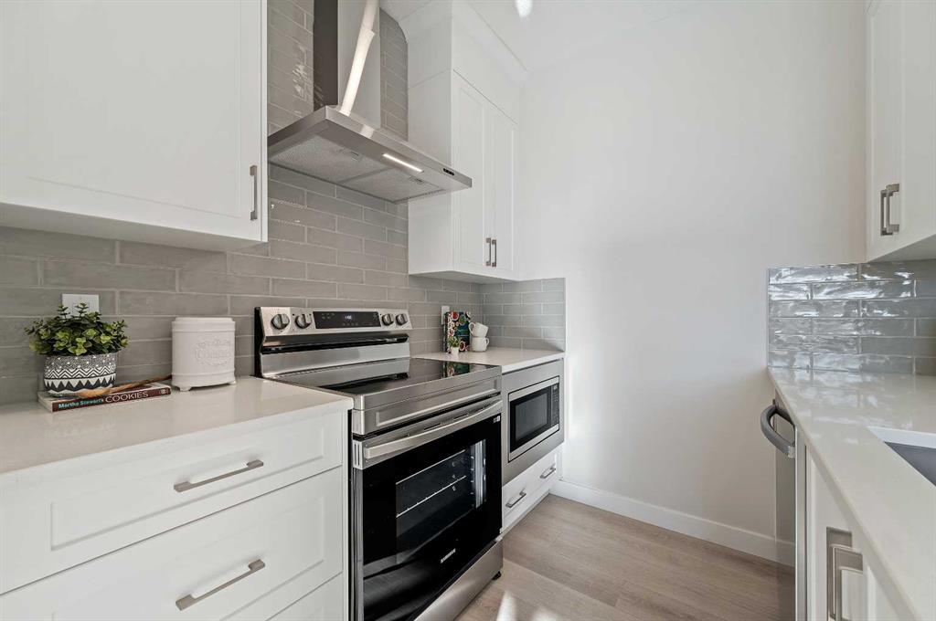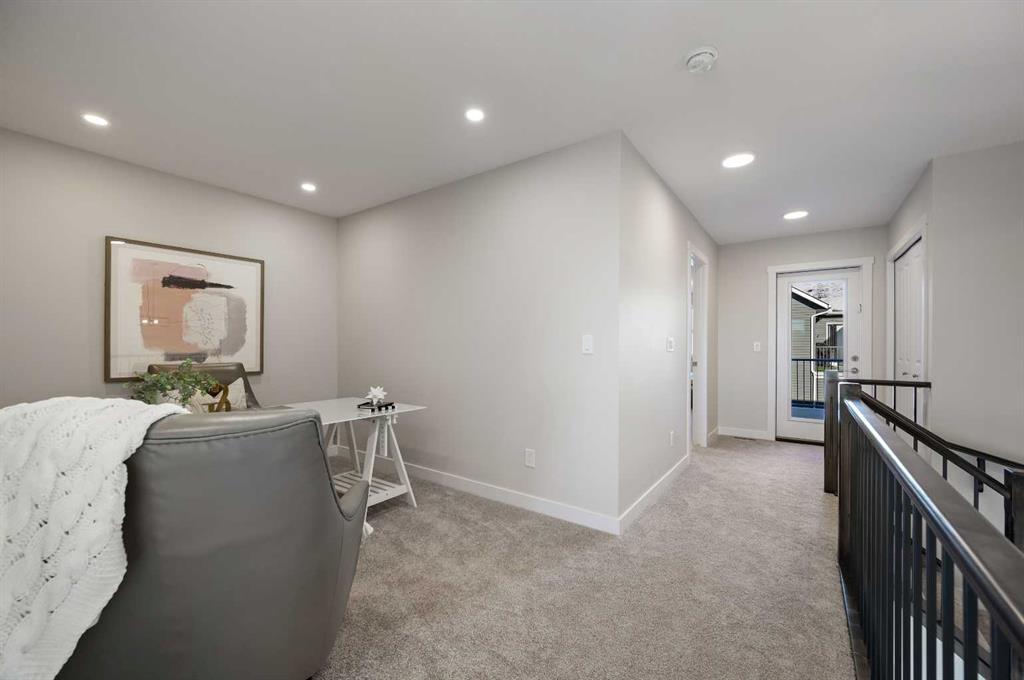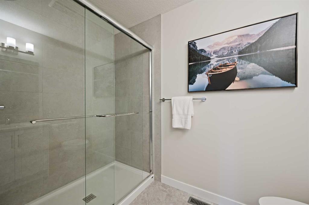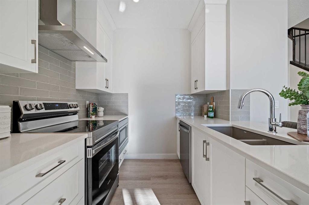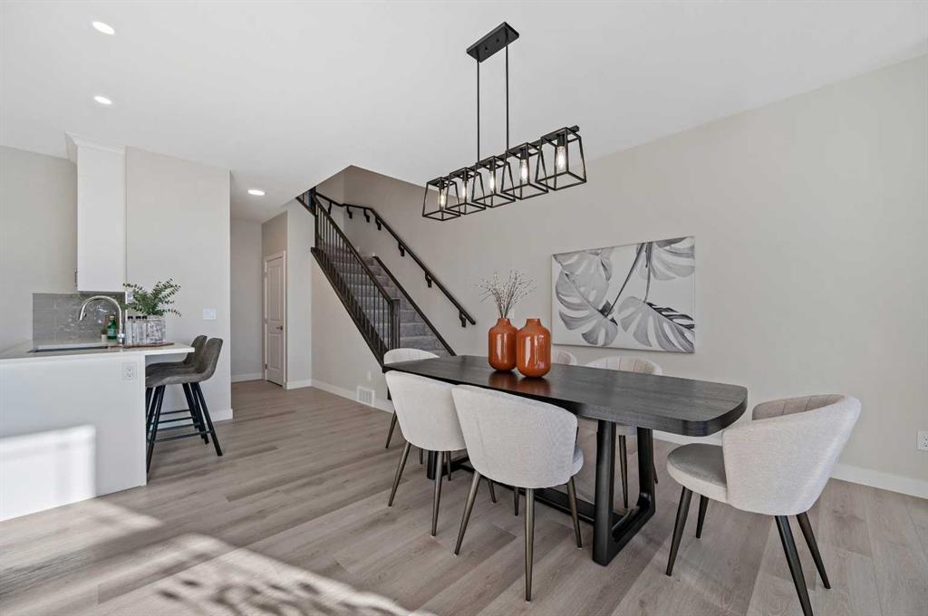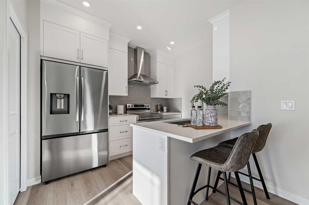 Genesis Builders introduces the Eli – a luxury street-side luxury townhome with NO CONDO FEES! The Eli townhome features an attached double garage and a rooftop patio, offering low-maintenance living. The thoughtfully designed home offers almost 1600 sq ft. plus an unfinished basement with 9-foot ceilings, ready for your ideas. Large windows and soaring ceilings on the main floor let natural light fill the open-concept living space. The chef-inspired kitchen features sleek cabinetry and stone countertops and is well-equipped with stainless-steel appliances. The kitchen is tucked away yet still feels open and inviting, providing ample room for activities in the open-concept dining and living room. A floor-to-ceiling tiled fireplace is the living room’s focal point. Complementing the main floor is a convenient half bath, storage, and access to the attached double garage, which is large enough for a truck. Venturing upstairs, you will find a spacious primary retreat with a spa-like ensuite featuring a shower, his-and-hers sinks, and a walk-in closet. Two additional bedrooms, a full bathroom, a flex room, a 4-piece bathroom, and laundry facilities complete the upper level. Enjoy spending time on your upper rooftop patio, situated above the garage, which is an excellent space for entertaining. Bayview is a beautiful community with parks, benches and pathways that meander throughout the community and along the canals. Kids and adults alike will enjoy the outdoor basketball nets, gym, amphitheatre, and tennis courts, which will convert into a skating rink in the winter. Come and see for yourself all the amenities the community has to offer!