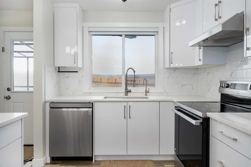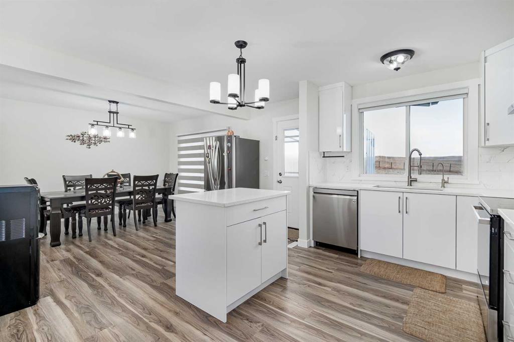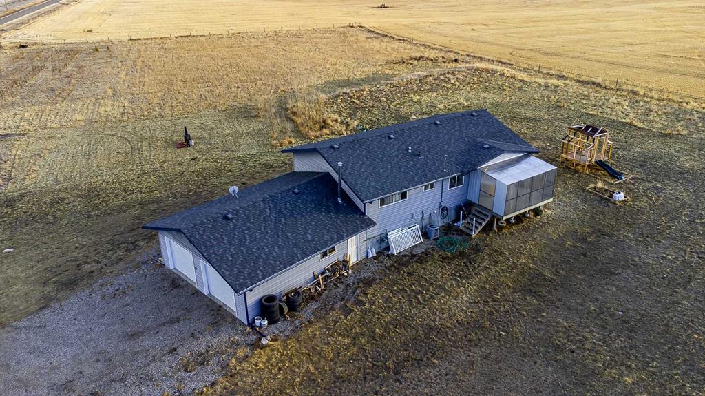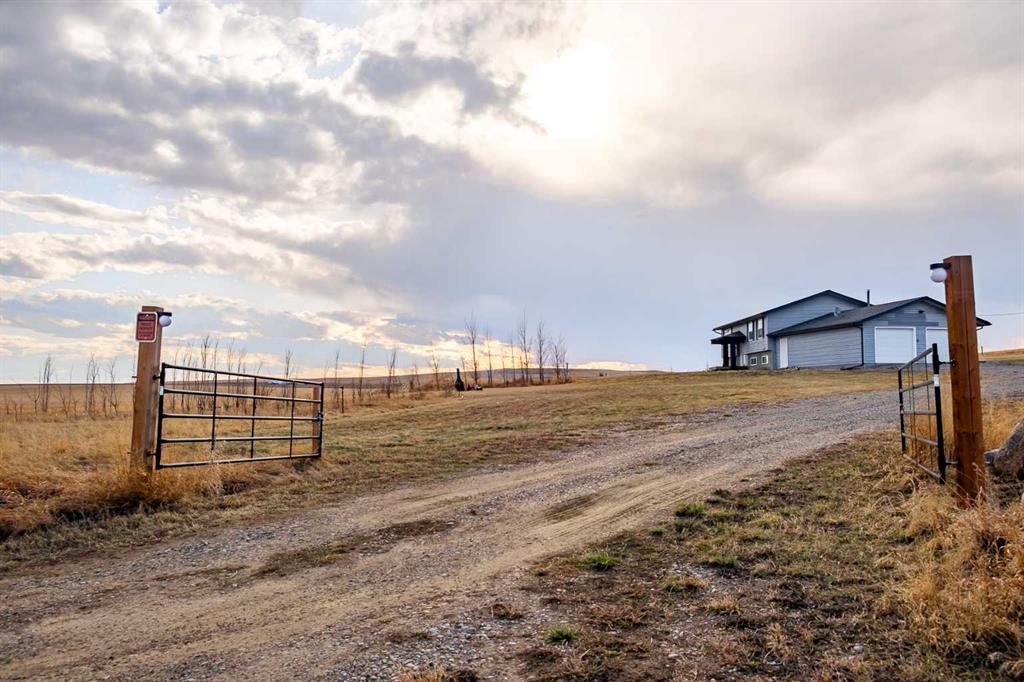Beautiful prairie views on 4 acres. A beautifully updated 4-bedroom bi-level home, with small hobby tree farm, just a short 35 minutes from Strathmore along Trans Canada Highway. Located near Cluny for nearby amenities and bus service to Wheatland Crossing K-12 school. PARTIAL IRRIGATION RIGHTS available (yearly subscription) too! Over 2000 sqft of updated developed living space in excellent condition, this home was put on a new (2018) concrete foundation with a LONG LIST of upgrades and recent updates. 2025: BRAND NEW KITCHEN quartz countertops, new cabinets, new backsplash, new oven and hood fan, new hardware and faucet. New flooring, fully repainted throughout the main floor, new blinds, and new bathroom vanities. Not just cosmetic, this home ALSO got in 2025: new high-efficiency hot water heater, new water softener, UVC water filter, RO system for drinking water. In 2018 this home got a new well (20GPM rating per the 2018 report provided) and advanced 1200 gallon septic tank & field, full 4 pc bathroom renovation, new roof, 100A electrical panel, new plumbing throughout, exterior doors & windows, pressure water tank, and new paint. 2021 and 2022: Central AC, new furnace heat exchanger, new gas garage heater, insulated garage doors, washer & dryer, and fridge & dishwasher. This is the perfect homestead property with the ability to drive to Strathmore or Calgary with so much potential to make your lifestyle dreams become reality. The open living room / dining room is flooded with natural light with the windows facing north, west, and south-east, all showing off the breathtaking, beautiful prairie views from your living room! The elegant kitchen is a delight to cook and entertain from. 3 well-sized bedrooms, a full 4 pc bath and a primary bedroom en-suite bathroom complete this main floor. The FULLY finished basement has the large fourth bedroom, a 2pc bathroom, and a secret hidden DEN tucked behind a moving built-in bookshelf – which would be perfect for a small theatre room, private work office, or simply some private storage. From the basement is access to the attached, huge 25 x 31 ft heated garage, big enough for two large vehicles plus more. CHECK OUT THE VIDEO AND VIRTUAL TOUR!