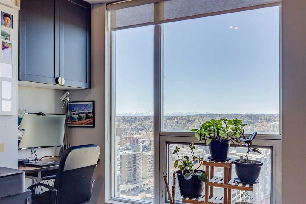 Experience the pinnacle of urban living in this rare sub-penthouse suite at Vantage Pointe. Perched on the 22nd floor with no neighbours on three sides, this residence offers unmatched privacy and breathtaking south and west views that stretch over the city, the river valley, and the Rocky Mountains. From this vantage point, you can watch spectacular sunsets paint the sky each evening — a daily show that never gets old.