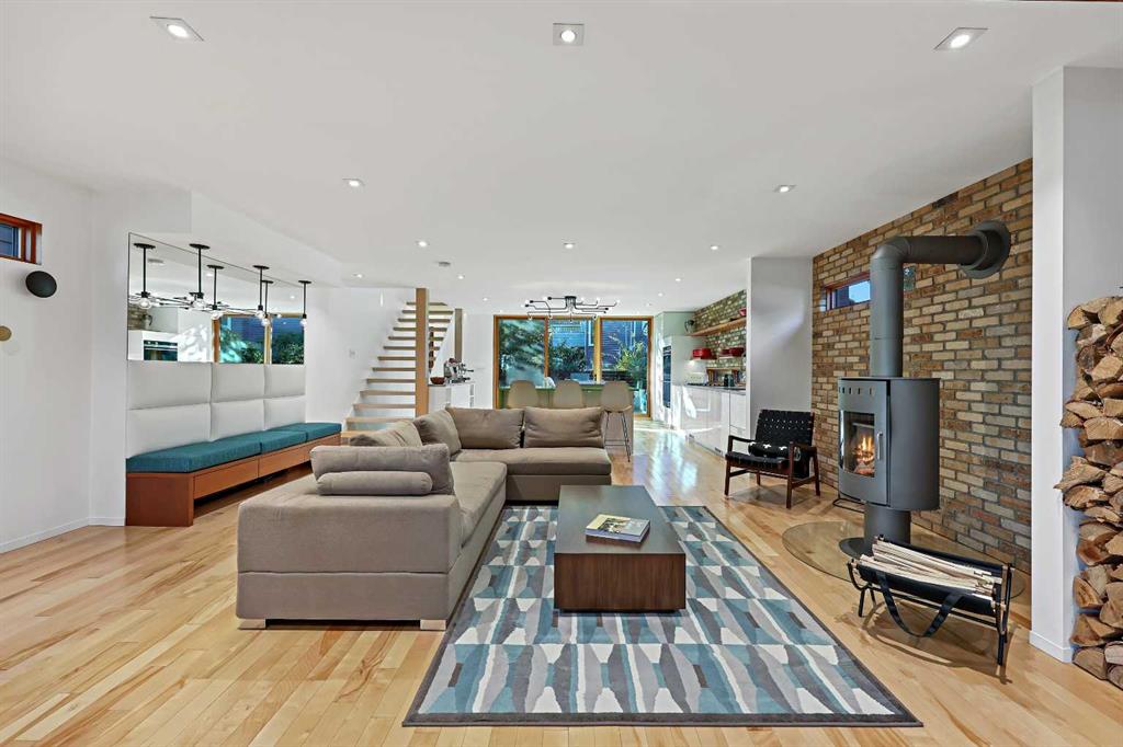 Welcome to 2211 19 Street SW, an extraordinary, fully redesigned and reimagined detached residence in the sought-after inner-city community of Richmond (formerly Knob Hill). This home embodies architectural precision, Scandinavian-inspired design, and exceptional craftsmanship. Gutted to the studs and rebuilt from the ground up, it’s a rare fusion of artistry and engineering that rivals Calgary’s finest custom homes. Step inside and be captivated by a wide bi-folding custom door framed by engineered metal header beams for flawless function and enduring strength. The open-concept main floor flows seamlessly beneath gleaming birch hardwood, centered around an engineered maple-and-metal floating staircase that defines the home’s light-filled, structural grace. Expansive south- and east-facing patio doors flood the interior with sunlight, while custom millwork and curated wood details create warmth and depth — from floating shelves with underlighting to Frank Lloyd Wright–inspired built-in bench seating with electronic drawers. The chef’s kitchen combines style and performance, featuring dual in-wall Fisher & Paykel ovens, double-stacked dishwashers, a five-burner flush-mounted cooktop with Miele downdraft venting, Sub-Zero undercounter fridges and freezer, beverage chiller, Insinkerator pro disposer, and on-demand hot water dispenser — all set within Silestone countertops imported from Spain. Every element was chosen for quality, innovation, and timeless appeal. A sculptural RAIS Scandinavian wood-burning fireplace, mounted on tempered glass, anchors the living space — an elegant centrepiece for cozy evenings or entertaining. Beyond, your professionally designed outdoor retreat awaits, featuring Indonesian hardwood decking, dual concrete lounge areas, a built-in gas fireplace, and architectural lighting that highlights every detail. Upstairs, the primary suite is a tranquil sanctuary with vaulted ceilings, downtown skyline views, and lush treetop privacy. A Swedish-imported feature wall and custom closet system elevate the sense of calm luxury. The ensuite evokes a Nordic spa, complete with heated floors, dual floating vanities, a wood-accented soaker tub, and a curb-less glass shower with dual heads. Two additional bedrooms — each with custom wardrobes, one with its own ensuite — plus a beautifully redesigned full bath and AEG European laundry system complete the upper level. Every system and surface has been meticulously updated: electrical, heating, and plumbing (2023–2025); triple-pane hardwood-matched windows; EIFS Armour woodpecker-proof stucco; and engineered structural beams throughout. The oversized double garage features spray-foam insulation, keeping upper rooms temperate, along with glass and aluminum doors. The custom-finished lower level includes under-stair organizers, an Indonesian hardwood corner bench, and designer lighting throughout. More than a renovation, this is a complete reinvention of light, space, and craftsmanship.