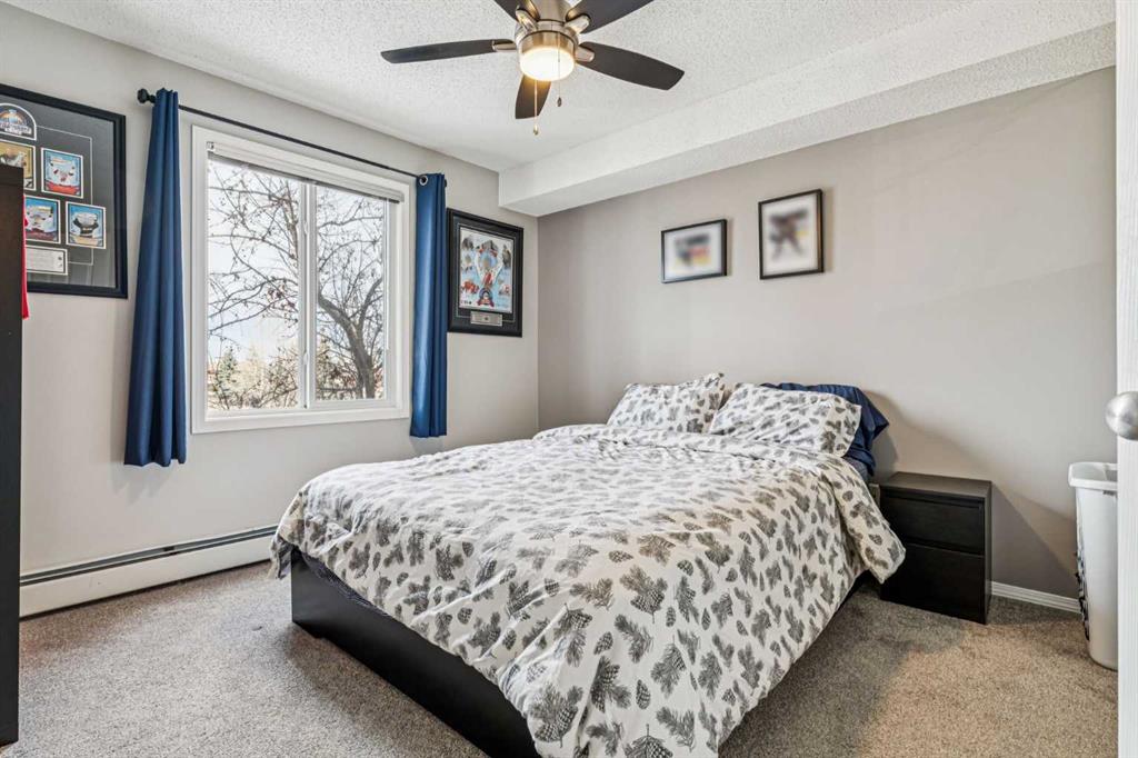 The well-designed floor plan continues with two generously sized bedrooms. The primary suite includes a walk-through closet leading to a private 4-piece ensuite. The second bedroom is ideally positioned across from a recently updated 4-piece bathroom, making it perfect for guests, a home office, or shared living. In-suite laundry and smart storage solutions add to the overall convenience.