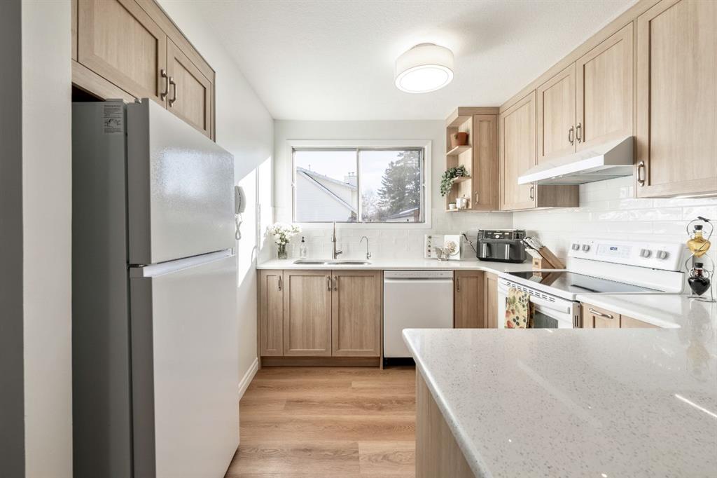 NO CONDO FEES! Snuggle up next to your brand new no-mess electric fireplace while you smile about inheriting over $50,000+ of extensive upgrades and updates in Woodlands! Enjoy delicious meals from your brand new, undermount lit custom TFL soft close cabineted, quartz countertoped, subway tile backsplashed chef’s dream kitchen, with all new fridge, electric range, range hood (2025), dishwasher (2023), freshly painted (2026), upgraded light fixtures (2026), with 20 mil luxury vinyl plank flooring throughout, knockdown stipple on the main level, with matching custom cabnetry in your mudroom, fireplace and built ins. Connect your BBQ to the gas line and entertain this summer on your patio, garden fresh herbs from your private, sunny south facing (ALL LEVEL) landscaped and fenced back yard. TWO new vinyl garden sheds, new eavestroughs (2025), plus loads of storage and potential to expand your living space in the lower level with your very own new washer and dryer (2025) are all ready for you to take for a spin. With so much love to give this one will not last! Book your private viewing today.