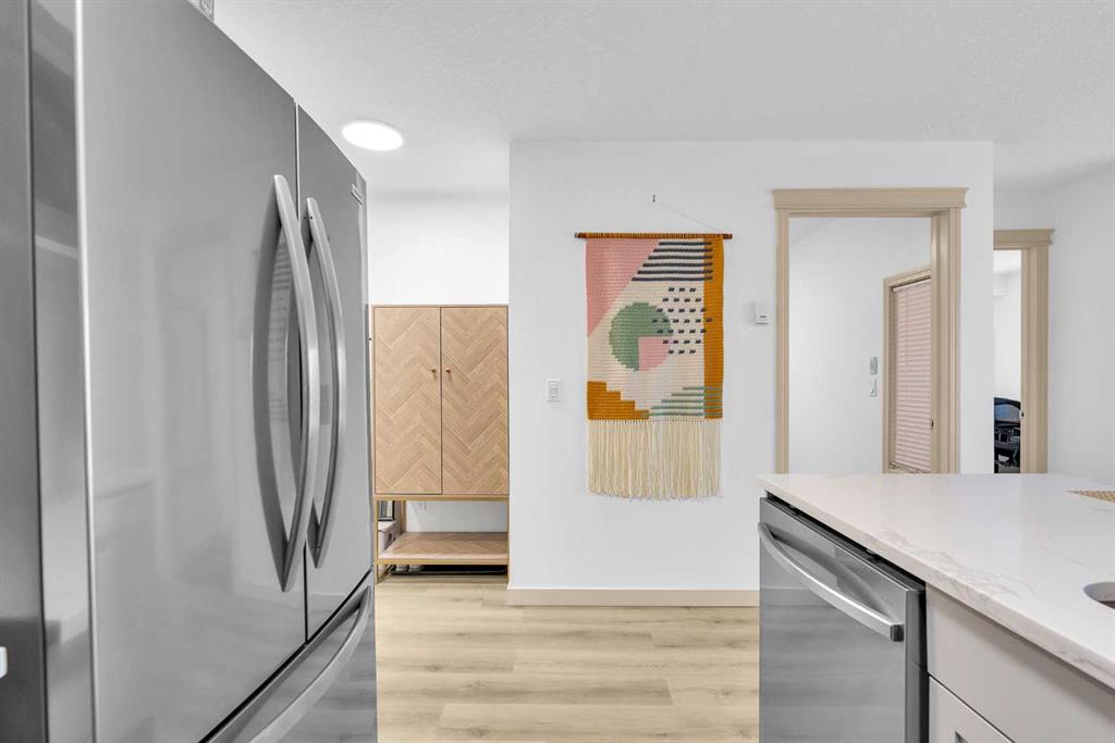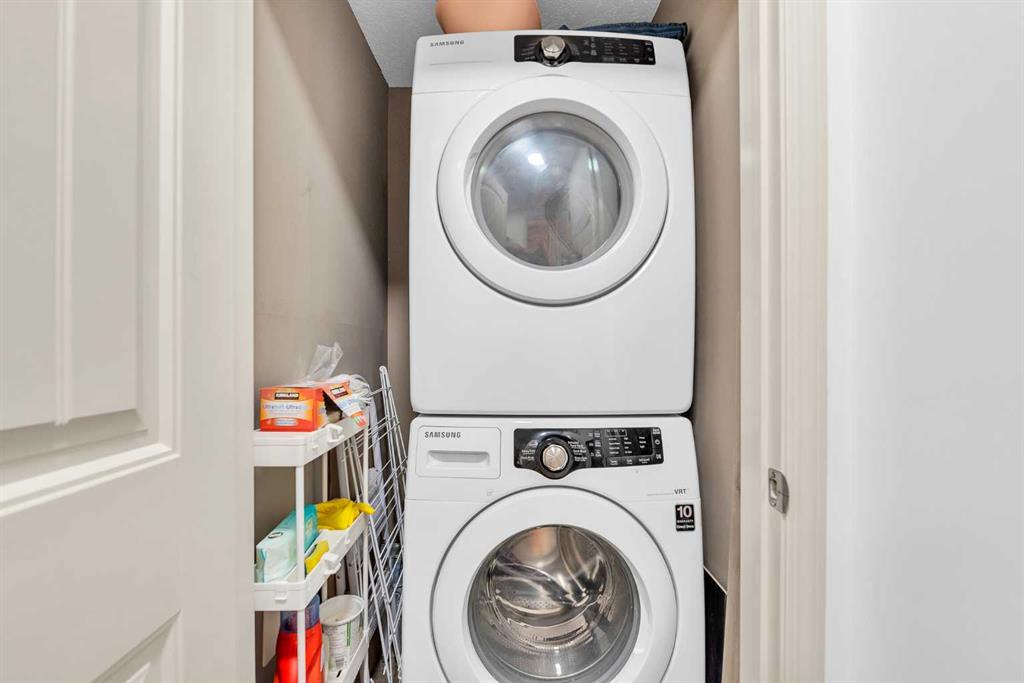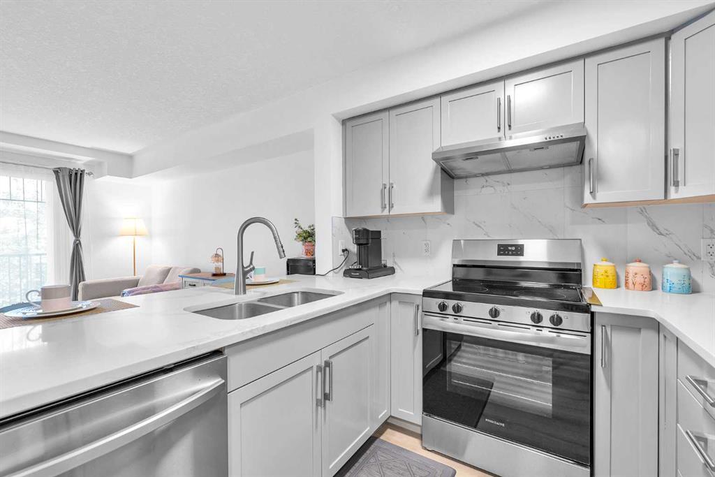 Welcome to this fully renovated 2-bedroom apartment in the sought-after community of Panorama Hills. Designed with modern living in mind, this home features brand new stainless steel appliances, elegant quartz countertops, fresh paint, and stylish vinyl plank flooring throughout. The open-concept layout includes a functional kitchen, spacious living room with access to a large balcony, two well-sized bedrooms, a full bathroom, and convenient in-suite laundry. A titled parking stall is also included. With low condo fees and a prime location close to shopping, schools, playgrounds, walking paths, ponds, and public transit, this property offers the perfect balance of style, comfort, and everyday convenience.