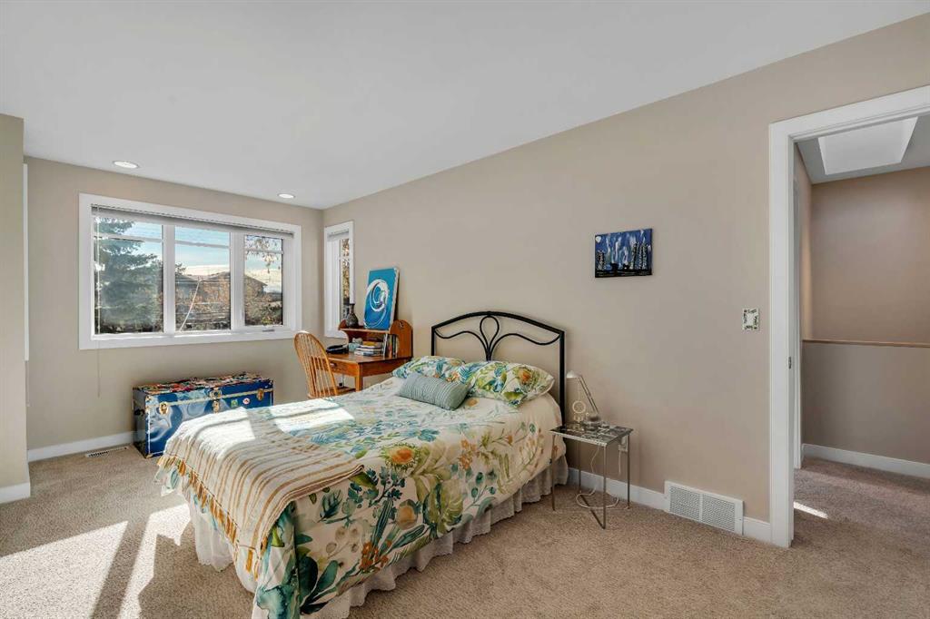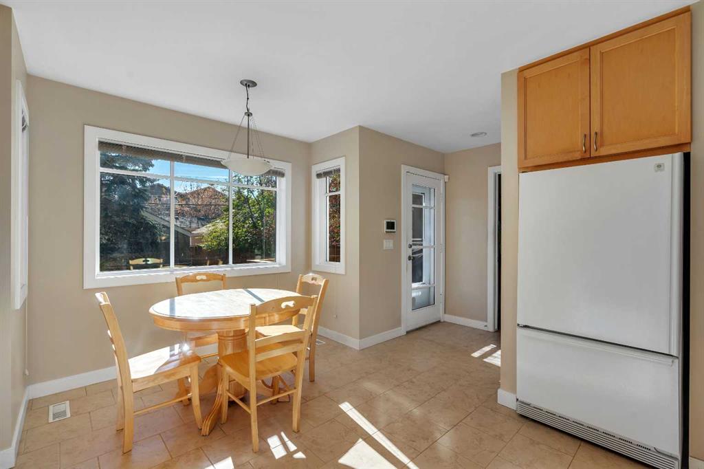 Welcome to 2215 2 Avenue NW. Nestled on a picturesque, tree-lined street in the heart of West Hillhurst, this beautifully designed inner-city infill blends classic charm with thoughtful modern updates. From the inviting full brick façade and exceptional curb appeal to the sunny south-facing backyard, every detail of this home reflects pride of ownership and timeless design. Step inside to discover a bright and spacious floor plan featuring 11-foot ceilings in the living room, hardwood flooring, and a cozy gas fireplace that creates a warm and welcoming atmosphere. Just a few steps up, the formal dining area easily accommodates a large table—perfect for hosting family gatherings or entertaining friends. The adjoining kitchen is well-appointed with granite countertops, ample cabinet and counter space, and a sunny breakfast nook overlooking the private backyard—an ideal setting for relaxed morning coffees or informal meals. Upstairs, the primary suite offers a vaulted ceiling, a balcony, a walk-in closet, and a private ensuite, while two additional bedrooms, a four-piece family bath, and upper-floor laundry provide comfort and convenience for the whole family. The fully developed lower level includes a spacious recreation room, an additional bedroom with a large above-grade window, and a full bath—perfect for guests, teens, or a home office setup. The home’s many updates add further value and peace of mind. The majority of windows were installed in 2019, the hot water tank was replaced in 2022, and the attic insulation was upgraded approximately three years ago. The roof is roughly ten years old, and the home also features flat ceilings, upgraded window treatments, and a built-in Vacuflo system for added comfort and convenience. Outdoors, you’ll love the private south-facing backyard (deeper than average), finished with antique Roman brick paving stones—a beautiful space to relax or entertain. Completing this exceptional property is a double detached garage, offering secure parking and additional storage. Located just steps from the Bow River Pathways and only minutes to Kensington, Edworthy Park, and many local favorites, this home also provides quick access to top schools, downtown, the UofC, SAIT, Foothills Medical Centre, and major roads including Crowchild Trail and Memorial Drive.