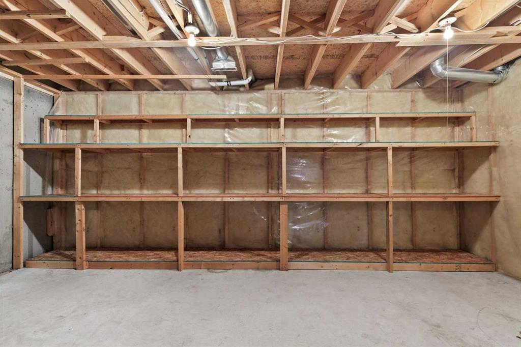 Downstairs, the walkout basement reveals a generous recreation room anchored by a cosy gas fireplace with oak mantel – a wonderful space for family movie nights or quiet evenings with a good book. An additional room previously used as a bedroom, a full bathroom, and a substantial unfinished area with built-in storage shelving offer tremendous flexibility. Envision a workshop, craft room, or hobby space tailored to your passions.