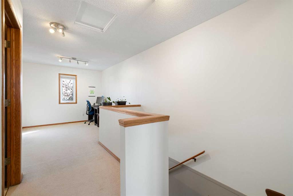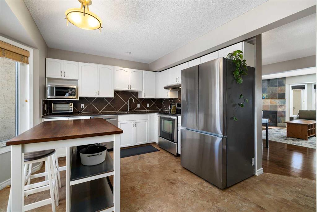 Stylish, Spacious & Perfectly Located in sought-after Christie Park Mews. Enjoy effortless townhouse living in this well maintained 1,348 sq ft two-storey offering 2 bedrooms plus a versatile loft. The main floor welcomes you with a bright, open-concept layout designed for both comfort and entertaining. The spacious living room features a contemporary slate-faced gas fireplace and offers plenty of flexibility for furniture placement. Seamlessly connected, the generous dining area easily accommodates gatherings with family and friends. Engineered hardwood flooring, adding warmth and continuity. The sunny, west-facing kitchen is both functional and inviting, complete with Granite countertops, white painted cabinetry, striking backsplash, stainless steel appliances (including a 2025 FRIDGE), and a convenient island for prep, storage. You’ll also find the convenience of main floor laundry (WASHER & DRYER 2025) and a powder room, along with direct access to a composite west-facing deck—perfect for evening BBQs. Upstairs, the spacious primary suite comfortably accommodates a king-sized bed and features a private 4-piece ensuite. A second bedroom and a flexible loft area—ideal for a home office or reading space—complete the upper level. The entry level offers additional functionality with access to a heated single garage with shelving to the rear, a bonus hobby or workout room, mechanical area with new FURNACE 2025, and extra storage—often referred to as the basement level. This well-managed, pet-friendly complex (with board approval) also features NEW TRIPLE-PANE WINDOWS for added comfort and efficiency. Location is exceptional— pathways & just a short walk to the LRT and West Market Square. Quick access to schools, Westside Recreation Centre, Westhills shopping, offering a wide array of shopping, dining, and everyday amenities & services, as well Sarcee Trail and Bow Trail. Comfort, convenience, and community in this warm, inviting Christie Park townhouse!
