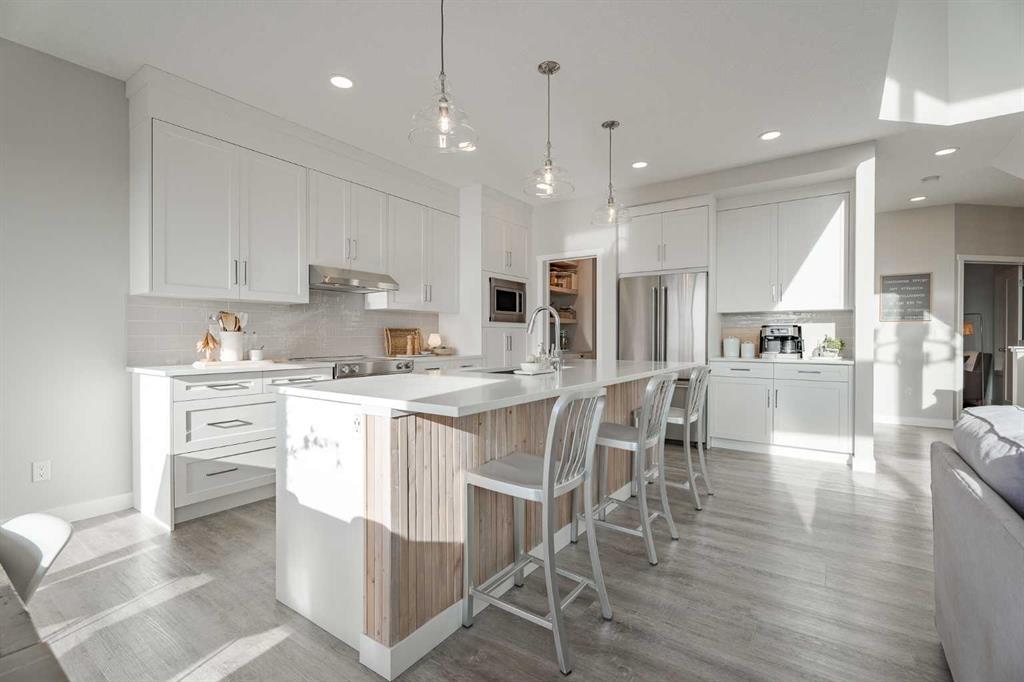 Welcome home to this stunning property in one of Airdrie’s most loved south communities, Kings Heights; with easy and quick access to Deerfoot. Perfectly tucked away on a quiet crescent, this home backs onto beautiful acreage properties, offering a rare sense of space and peaceful, country-style living just minutes from Kingsview Market, its amenities, and a nice selection of nearby schools. Inside, soaring two-storey windows flood the main living area with natural light — a breathtaking view you can also enjoy from the second level. The main floor features ultra-durable laminate floors, a spacious living room centered around a stunning feature fireplace, and a chef’s kitchen with upgraded appliances, and sleek quartz counter throughout. A main floor office/den conveniently placed by the front entrance provides an ideal space for work or study. Upstairs, you’ll find three spacious bedrooms, including a primary suite with a large walk-in closet with built-ins and a spa-inspired 5pc ensuite. You’ll love the open view of the main living area below, where sunlight pours through the dramatic windows. A spacious vaulted ceiling bonus room, along with wainscoting and feature walls throughout, add timeless charm and a perfect amount of living space. The undeveloped basement with a rough-in bathroom awaits your finishing ideas, while the double attached garage provides everyday convenience. Step outside to a large backyard with plenty of room to play, relax, and grow. This home perfectly blends light, luxury, and livability, offering the warmth of country charm with the convenience of city life.