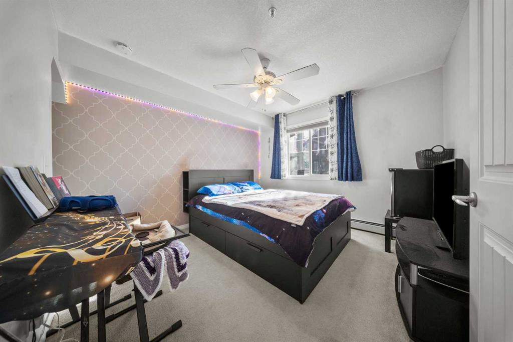 Discover bright, contemporary living in this impeccably maintained apartment in Prestwick Place, situated within the charming community of McKenzie Towne. Spanning nearly 850 SqFt of functional living space, this home feels instantly welcoming with recent upgrades that include fresh paint and stylish wide plank LVP flooring. The thoughtful layout begins with a versatile den area, complete with a built-in PAX wardrobe, which could make a great home office, before opening into a spacious living space. The open plan living area features a kitchen with plentiful wood cabinetry, sleek black appliances, and a beautiful mosaic tiled backsplash. An eat-up peninsula island provides the perfect spot for casual meals and there is a generous dining space that flows effortlessly into the living room. From here, step out onto the South facing balcony with gas line for BBQ and enjoy the summer sun. Accommodations include two well-appointed bedrooms, highlighted by a master suite that boasts a walk-in closet and an en-suite bathroom. There is a second bedroom and another full family bathroom plus a convenient laundry cupboard with a stacked washer and dryer keeping daily chores tucked away. This unit offers exceptional value with 2 titled parking spots, 1 of which is located in the heated underground parkade and 2nd surface stall, plus you have a private storage locker for seasonal items. Beyond the apartment itself, enjoy an unbeatable location within walking distance to community schools and the town center. You’re also just steps away from the Prestwick Spray Park which offers ice skating in winter months and the vibrant shopping and dining options on 130th Avenue. Commuting is effortless with nearby access to Deerfoot Trail, Stoney Trail, and 52nd Street. Experience the perfect blend of comfort and convenience in this move-in-ready home.