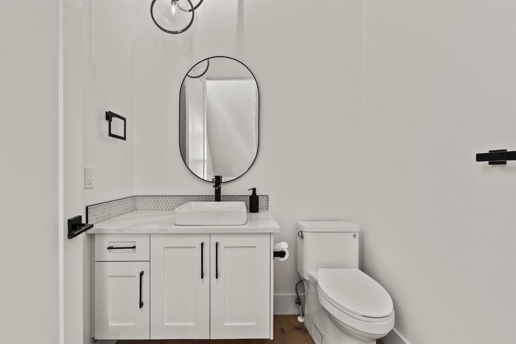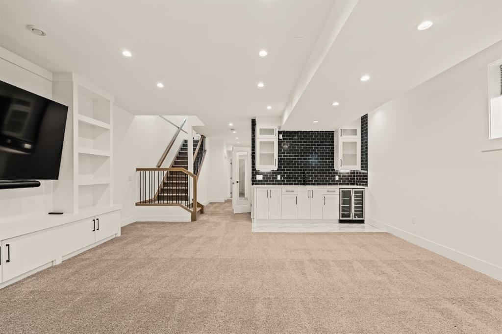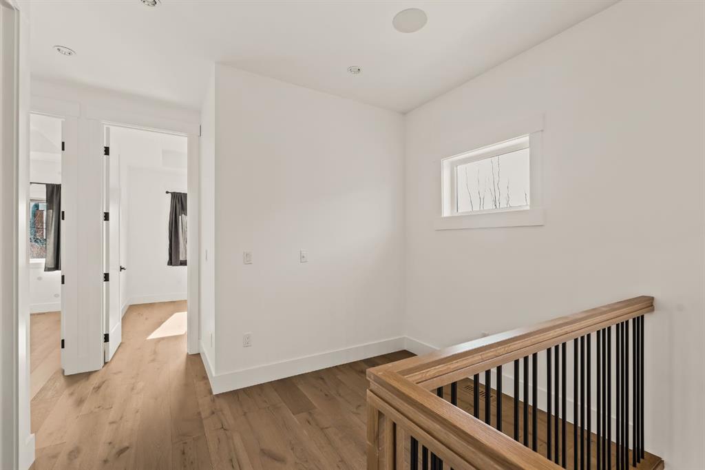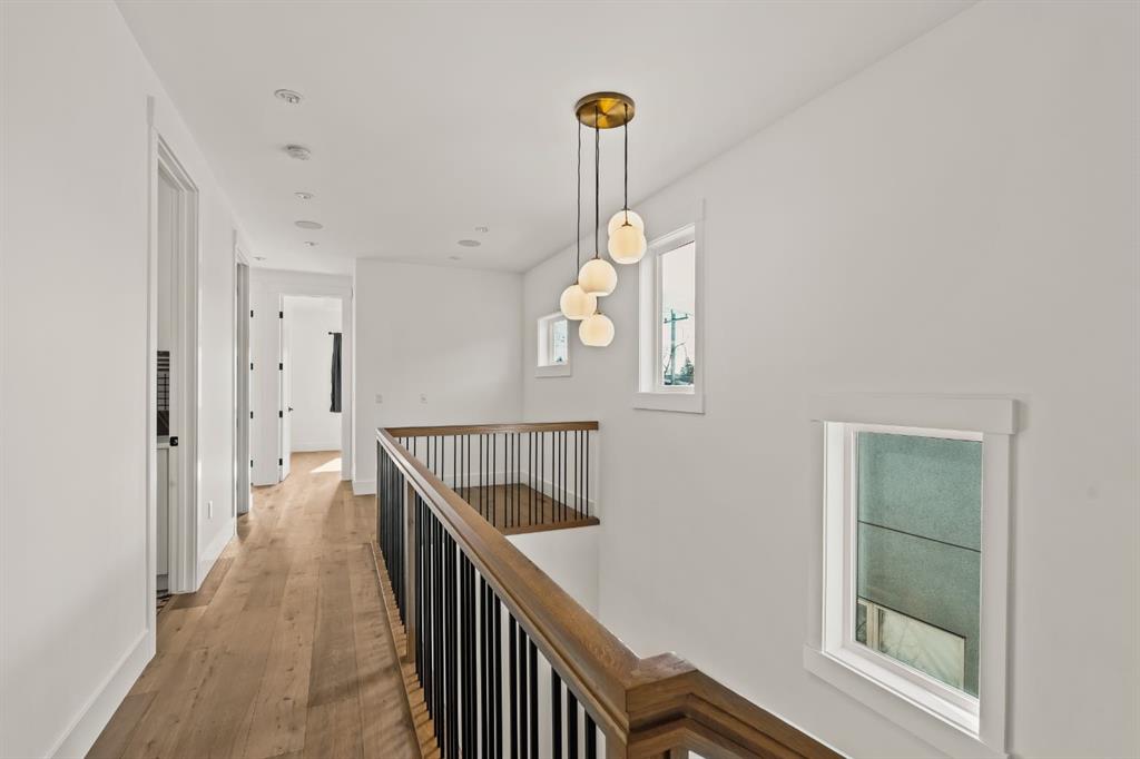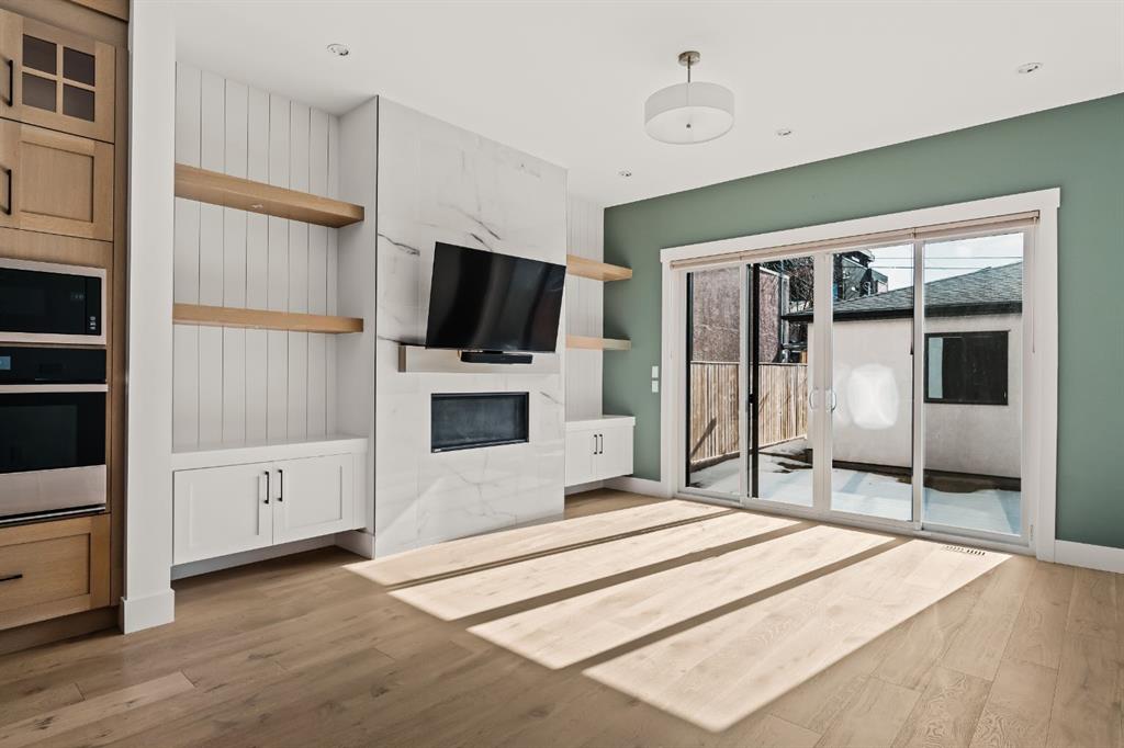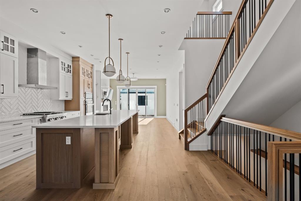 Welcome to this exceptional detached luxury infill offering over 3,500 sq.ft. of beautifully developed living space in the sought-after inner-city community of Richmond. Thoughtfully designed and impeccably finished, this residence sits on a rare 30’ wide lot and showcases timeless architecture paired with elevated modern design. The main level is defined by soaring 10-foot ceilings, wide plank hardwood flooring, and sophisticated custom millwork, creating an atmosphere that feels both refined and inviting. At the heart of the home is a stunning chef-inspired kitchen, complete with a large quartz island, striking two-tone custom cabinetry, and premium JennAir appliances. A well-appointed butler’s pantry adds both convenience and additional storage, making entertaining effortless. The elegant dining area seamlessly connects to the sun-filled great room, where a gas fireplace framed by custom built-ins creates a warm focal point for gatherings. Expansive dual sliding doors open to the south-facing backyard and patio, offering the perfect extension of the living space for outdoor entertaining and quiet summer evenings. A private main floor den provides an ideal setting for a home office or study, while a thoughtfully designed mudroom ensures everyday functionality. Upstairs, the serene primary retreat offers a true sense of escape, complete with a spa-inspired ensuite featuring heated floors, a fully tiled walk-in shower, deep soaker tub, and elegant dual vanities. Two additional bedrooms, a beautifully finished main bath, convenient upper laundry, and a versatile loft area complete the upper level. The fully developed lower level is designed with entertaining in mind, featuring a spacious recreation room with custom built-in media storage, a wet bar with wine cooler, and ample room to host family and friends. An additional bedroom, full bathroom, and flexible bonus room—perfect as a home gym, studio, or office—enhance the home’s functionality. Additional features include Hunter Douglas blinds, integrated smart home lighting and thermostat controls, central air conditioning, HRV system, high-efficiency furnace, and upgraded mechanical systems. ALL TV’s, Mounts and SONOS Soundbars INCLUDED. The property is completed by a fully insulated and heated detached garage and paved rear lane. Ideally located on a quiet street just minutes from Marda Loop, River Park, top-rated schools, shopping, and downtown, this beautifully crafted home delivers the perfect balance of luxury, comfort, and inner-city convenience. Immediate possession available!