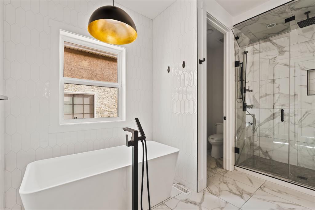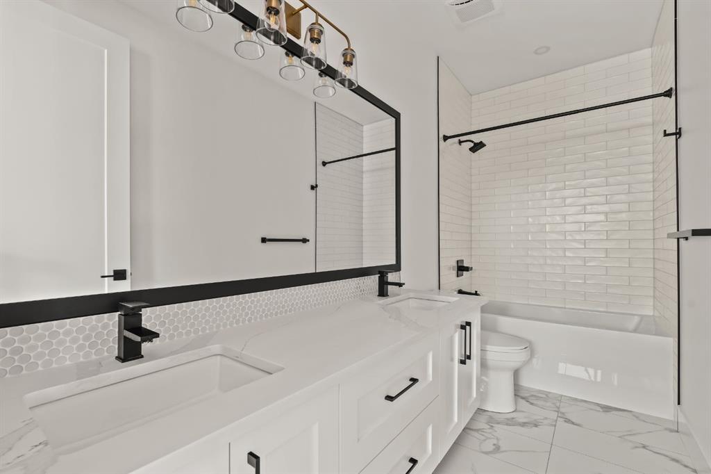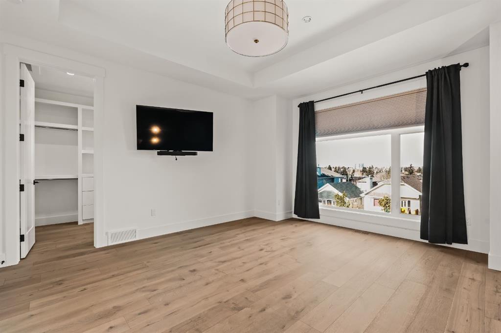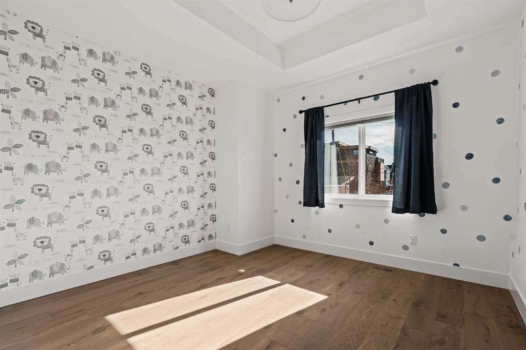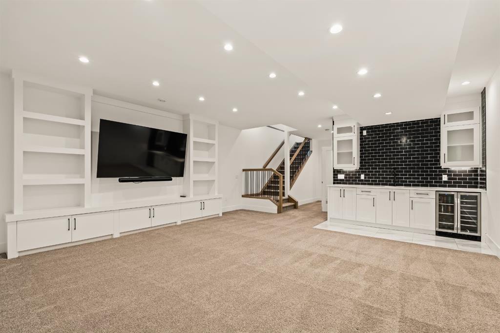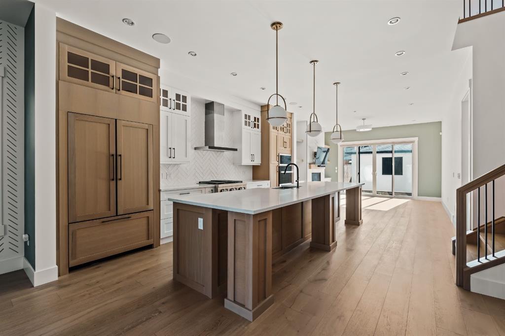 Welcome to this exceptional detached luxury infill offering over 3,500 sq.ft. of beautifully developed living space in the sought-after inner-city community of Richmond. Thoughtfully designed and impeccably finished, this residence sits on a rare 30’ wide lot and showcases timeless architecture paired with elevated modern design. The main level is defined by soaring 10-foot ceilings, wide plank hardwood flooring, and sophisticated custom millwork, creating an atmosphere that feels both refined and inviting. At the heart of the home is a stunning chef-inspired kitchen, complete with a large quartz island, striking two-tone custom cabinetry, and premium JennAir appliances. A well-appointed butler’s pantry adds both convenience and additional storage, making entertaining effortless. The elegant dining area seamlessly connects to the sun-filled great room, where a gas fireplace framed by custom built-ins creates a warm focal point for gatherings. Expansive dual sliding doors open to the south-facing backyard and patio, offering the perfect extension of the living space for outdoor entertaining and quiet summer evenings. A private main floor den provides an ideal setting for a home office or study, while a thoughtfully designed mudroom ensures everyday functionality. Upstairs, the serene primary retreat offers a true sense of escape, complete with a spa-inspired ensuite featuring heated floors, a fully tiled walk-in shower, deep soaker tub, and elegant dual vanities. Two additional bedrooms, a beautifully finished main bath, convenient upper laundry, and a versatile loft area complete the upper level. The fully developed lower level is designed with entertaining in mind, featuring a spacious recreation room with custom built-in media storage, a wet bar with wine cooler, and ample room to host family and friends. An additional bedroom, full bathroom, and flexible bonus room—perfect as a home gym, studio, or office—enhance the home’s functionality. Additional features include Hunter Douglas blinds, integrated smart home lighting and thermostat controls, central air conditioning, HRV system, high-efficiency furnace, and upgraded mechanical systems. ALL TV’s, Mounts and SONOS Soundbars INCLUDED. The property is completed by a fully insulated and heated detached garage and paved rear lane. Ideally located on a quiet street just minutes from Marda Loop, River Park, top-rated schools, shopping, and downtown, this beautifully crafted home delivers the perfect balance of luxury, comfort, and inner-city convenience. Immediate possession available!